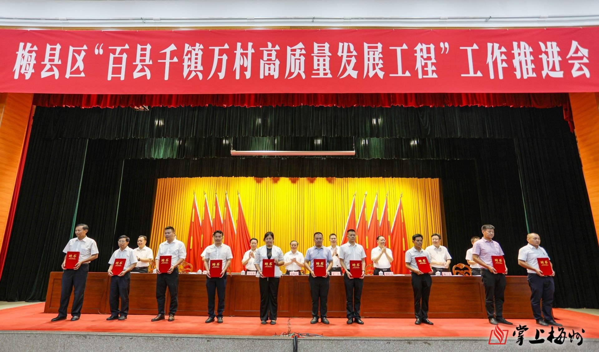 掌上梅州讯 6月14日下午,梅县区在“百县千镇万村高质量发展工程”工作推进会上,举行了“产业村长”聘书颁发仪式,标志着该区首批25名“产业村长”正式上岗。梅县区委书记温助民、区长王锋参加。