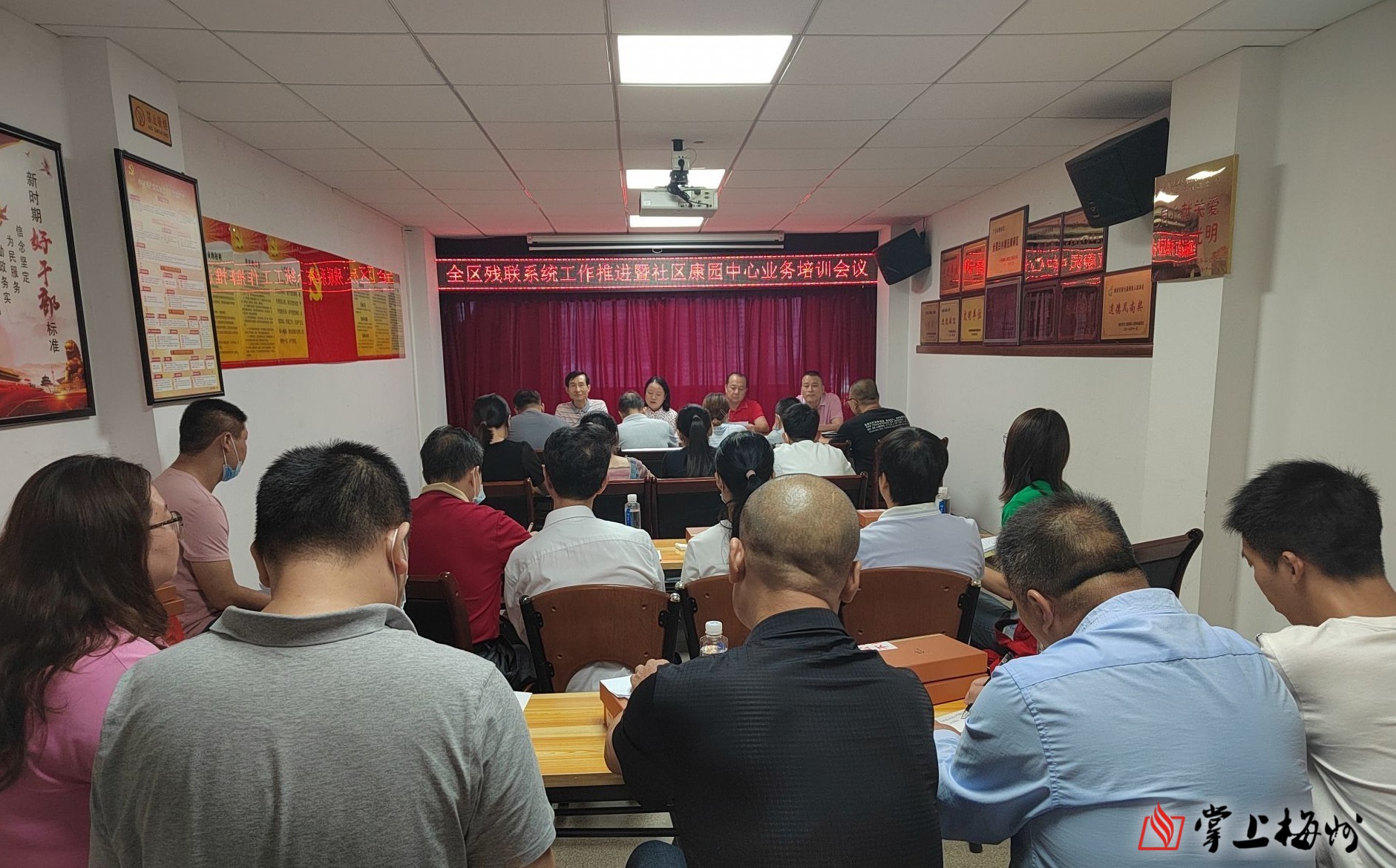 掌上梅州讯 6月14日上午,梅县区残疾人联合会召开全区残联系统工作推进暨社区康园中心业务培训会议,各镇(办事处、高管会),梅西水库管理局残联社工参加会议。