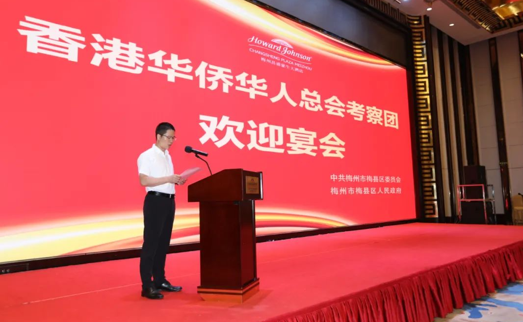 在欢迎晚宴上,王锋代表区委、区政府对考察团的到来表示热烈欢迎,对香港侨胞长期以来对梅县的关心支持表示衷心感谢。他指出,当前梅县区正深入贯彻落实党的二十大精神和习近平总书记视察广东重要讲话、重要指示精神,按照省委“1310”具体部署,紧紧抓住建设苏区融湾先行区、实施“百千万工程”等重大机遇,狠抓发展第一要务,全面激发内生动力,全力做大县域、做强产业、做特镇村、做美乡村、做活文旅、做优生态,打造强富绿美新县域,争当全市高质量发展排头兵。衷心希望各位乡亲多回来走一走、看一看,游览客家山水、领略客家风情、感受客家文化,并一如既往地为梅县的建设和发展献计献策、贡献力量,吸引和带动更多的有识之士来梅县投资、置业、安居。区委、区政府将以最大的诚意、最优的环境、最实的政策,为广大侨胞提供最好的服务。