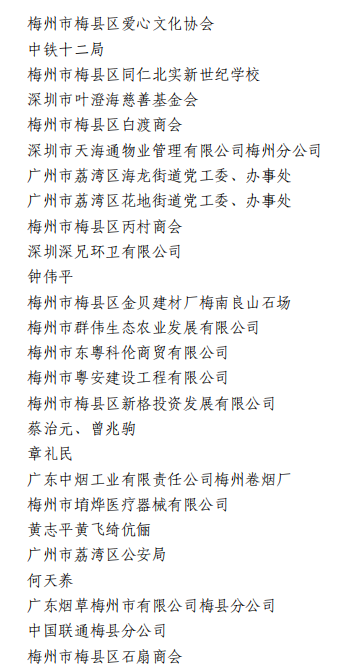2022年,梅县区上下紧扣广东扶贫济困日活动“巩固脱贫成果,助力乡村振兴”这一主题,广泛发动爱心企业、爱心人士和其他社会力量,全方位参与巩固脱贫攻坚成果、助力梅县区乡村振兴的伟大事业中,涌现出一批有社会责任感、乐善好施的爱心单位(企业)和爱心人士,他们的扶贫善举彰显了社会大爱,彰显了社会各界乐于奉献、热心公益的优良传统,为巩固脱贫攻坚成果、助力乡村全面振兴作出了贡献。