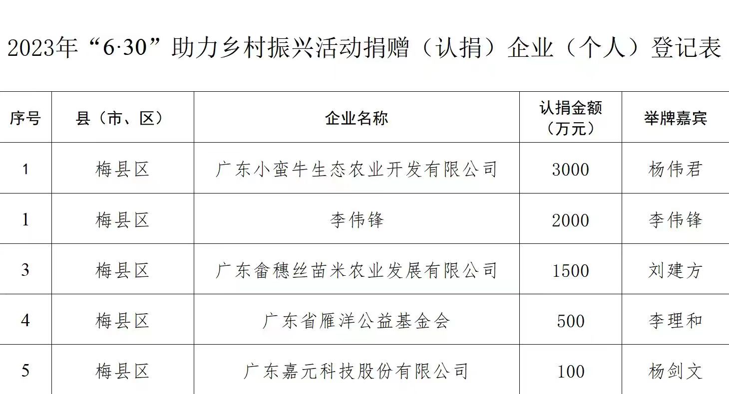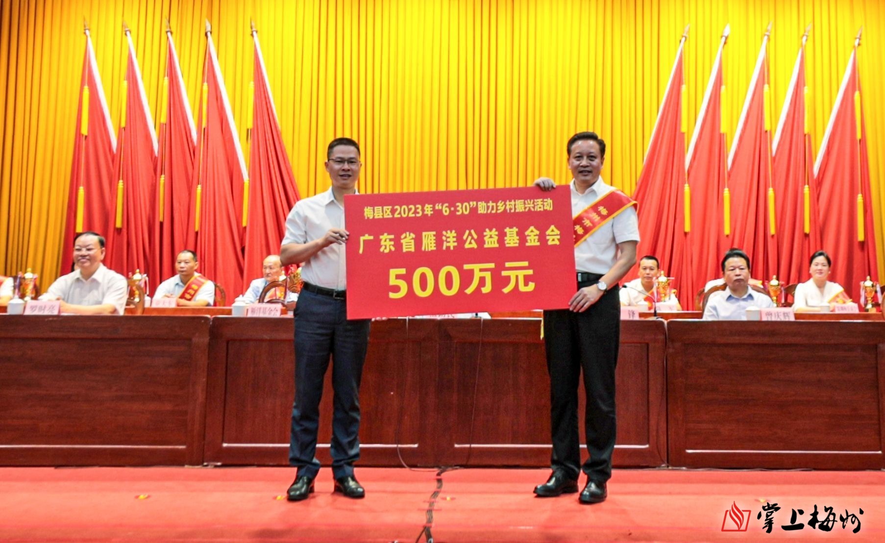 掌上梅州讯 6月30日上午,梅县区举行2023年“6·30”助力乡村振兴活动仪式,深入贯彻落实党的二十大精神和习近平总书记视察广东重要讲话、重要指示精神,进一步动员社会各界参与到“百县千镇万村高质量发展工程”上来,为梅县区巩固脱贫成果、全面推进乡村振兴汇聚强大合力。
