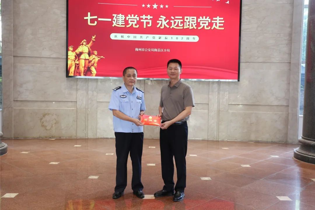 在中国共产党成立102周年之际,为加强党内关怀,传递组织温暖,进一步弘扬党的光荣传统和优良作风。6月28日上午,梅县区副区长、区公安分局党委书记、局长陈海晗同志和分局党委副书记、政委卓胜军同志先后看望慰问了2023年获颁“光荣在党50年”纪念章的老党员和生活困难党员,为他们送去节日祝福和组织关怀。政工室主任廖英隆陪同。