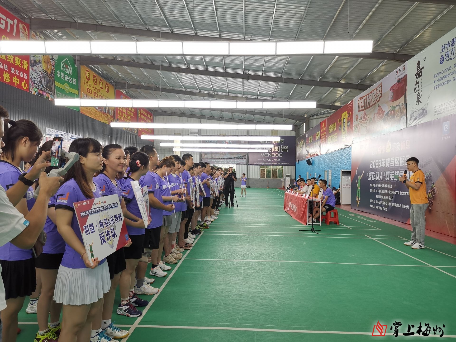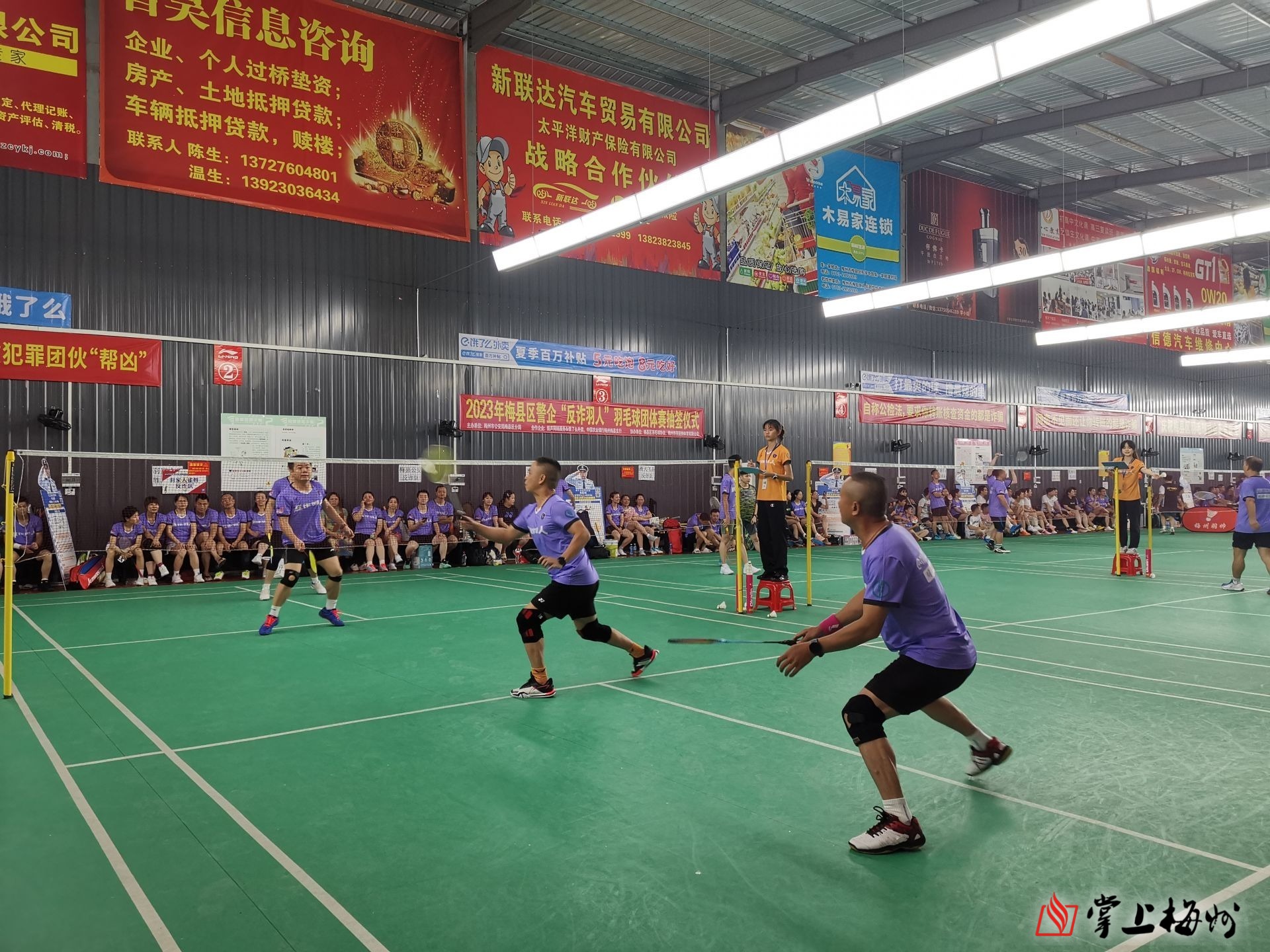 掌上梅州讯 7月1日至2日,梅县区公安分局联合梅县区羽毛球协会以及相关合作企业在梅州羽帅羽毛球馆举行2023年梅县区警企“反诈羽人”羽毛球团体赛,进一步营造全民反诈的社会氛围,提高群众反诈防骗的意识。