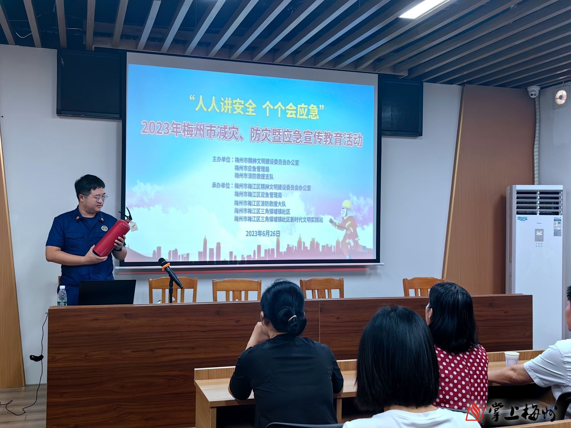“消防员为社区干部群众讲解了灭火器等消防器材的有关知识,并现场演示了灭火器正确使用方法,还让大家进行了实操,在互动实践中提升了防灾减灾救灾认知能力和应急能力。”梅江区三角镇墟镇社区党总支部书记丘丽娜说。