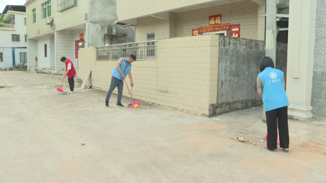 梅南镇团委专职副书记吴志峰:“今天我镇动员了志愿者和社工到新塘村进行卫生清扫活动,主要是对周边环境、河道垃圾进行清理。为了做好环境保洁工作,提升群众的生活环境质量。”