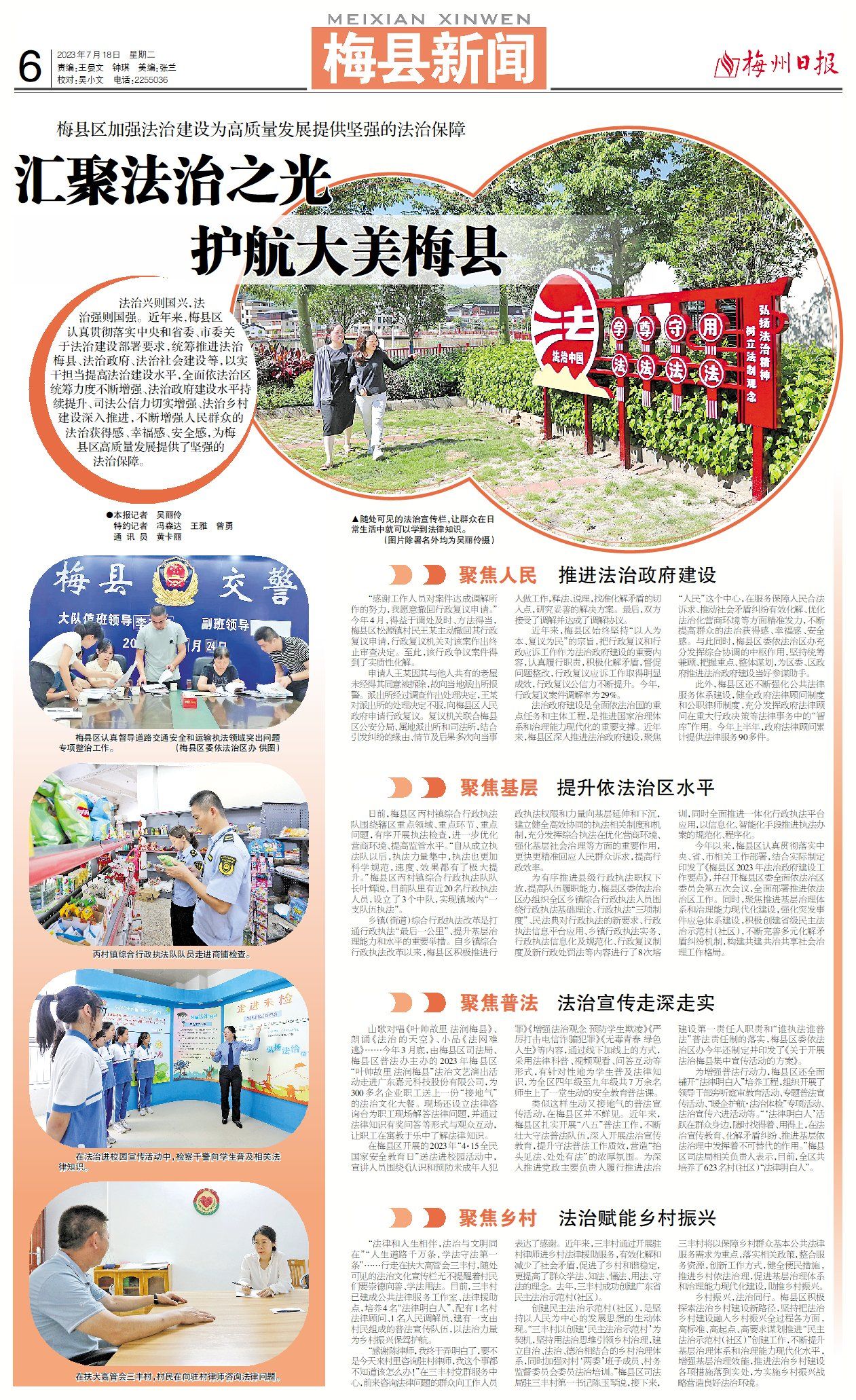法治兴则国兴,法治强则国强。近年来,梅县区认真贯彻落实中央和省委、市委关于法治建设部署要求,统筹推进法治梅县、法治政府、法治社会建设等,以实干担当提高法治建设水平,全面依法治区统筹力度不断增强、法治政府建设水平持续提升、司法公信力切实增强、法治乡村建设深入推进,不断增强人民群众的法治获得感、幸福感、安全感,为梅县区高质量发展提供了坚强的法治保障。
