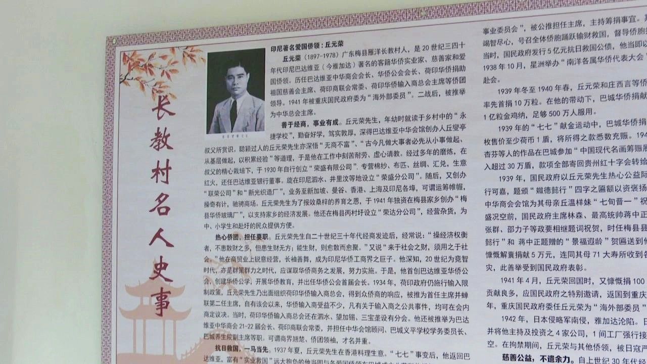 长教村党总支部书记、村委会主任叶华波:“长教村史馆是原来的长教小学,在2013年并校后一直闲置,去年乡村振兴创建示范带,趁这个机会,得到了区委宣传部和方志办、镇村各级(的支持),共同打造村史馆,村史馆建成后,把长教村的历史文化、历史名人,展示在这里,教育后人。”