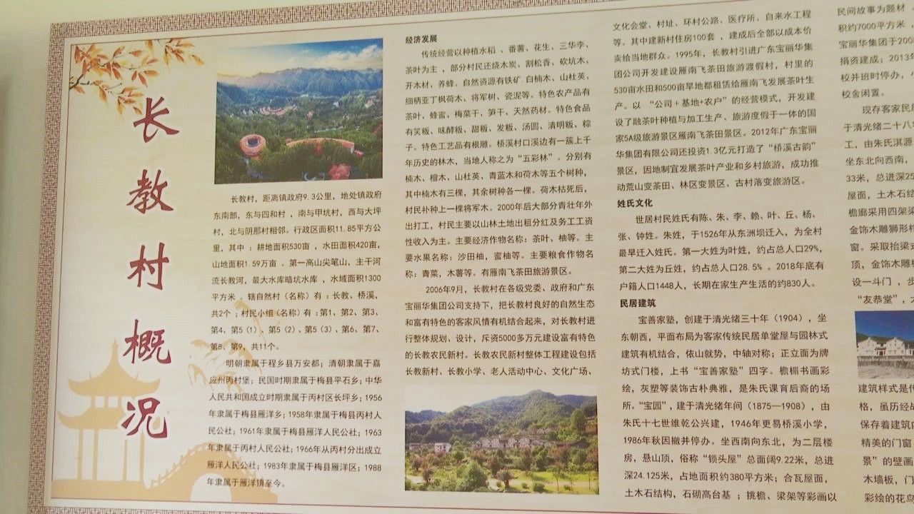 走进雁洋镇长教村,可以看到一座独具特色的村史馆,馆内以图文并茂的形式展示了该村源远流长的历史文化、民俗文化和生活变迁。