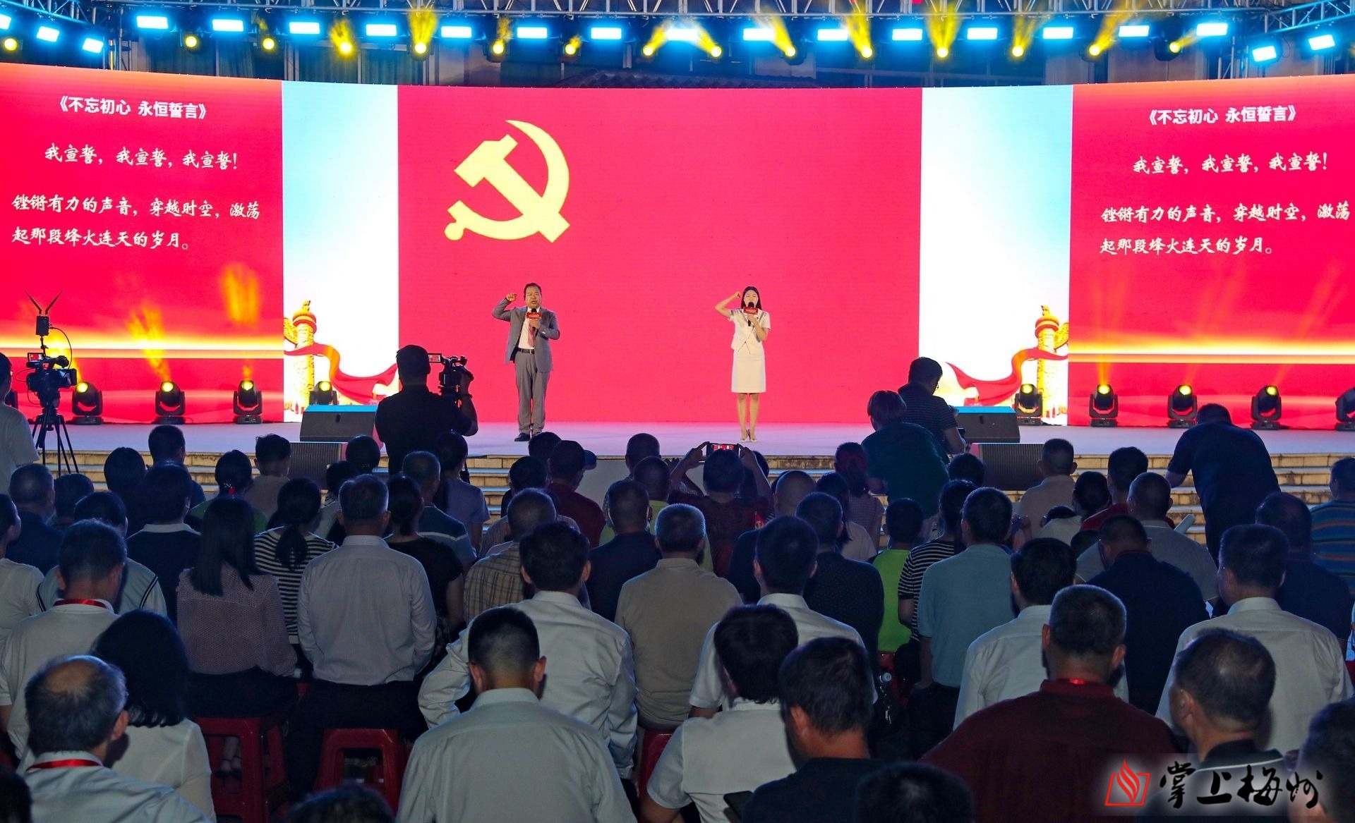 在《星辰大海》的深情歌颂落下后,广东演讲学会党支部书记、会长孙朝阳和梅县区融媒体中心主持人路博云作《不忘初心 永恒誓言》暖誓演讲。全体共产党员在市委常委、副市长赵东,雁洋镇党委书记叶铭光,雁上村党总支书记叶新全,四和村党支部书记梁海苑和对坑村党支部书记赖剑辉的共同领誓之下,重温入党誓词。