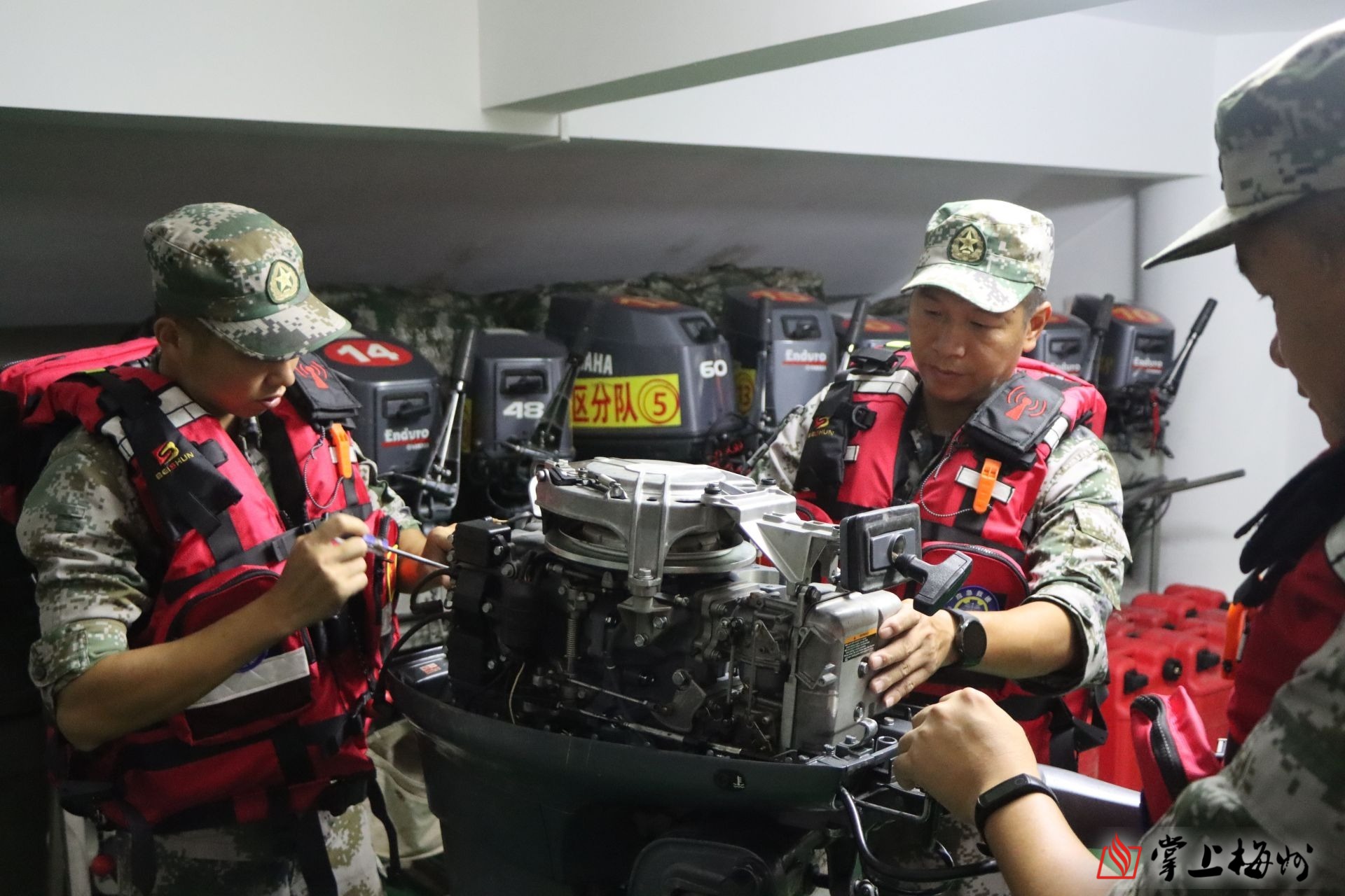 防患未然,做好出动准备。梅县区民兵应急分队积极响应,迅速行动,对防御台风救援器材装备进行全面清点和检测,对各类车辆、冲锋舟、救生衣、橡皮艇、无人机、卫星电话等关键装备清点、补充和维护,并对装备性能进行全面测试,确保装备底数清性能好。尔后,组织民兵应急连、应急排进行人员紧急拉动演练,严密做好防御台风各项准备工作,切实提高防台风综合应急能力,确保随时能遂行任务。目前所有人员已收拢集结待命,全部进入战斗状态。