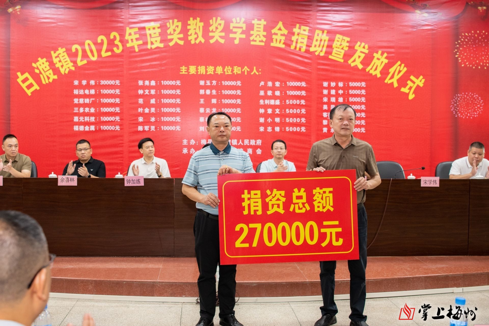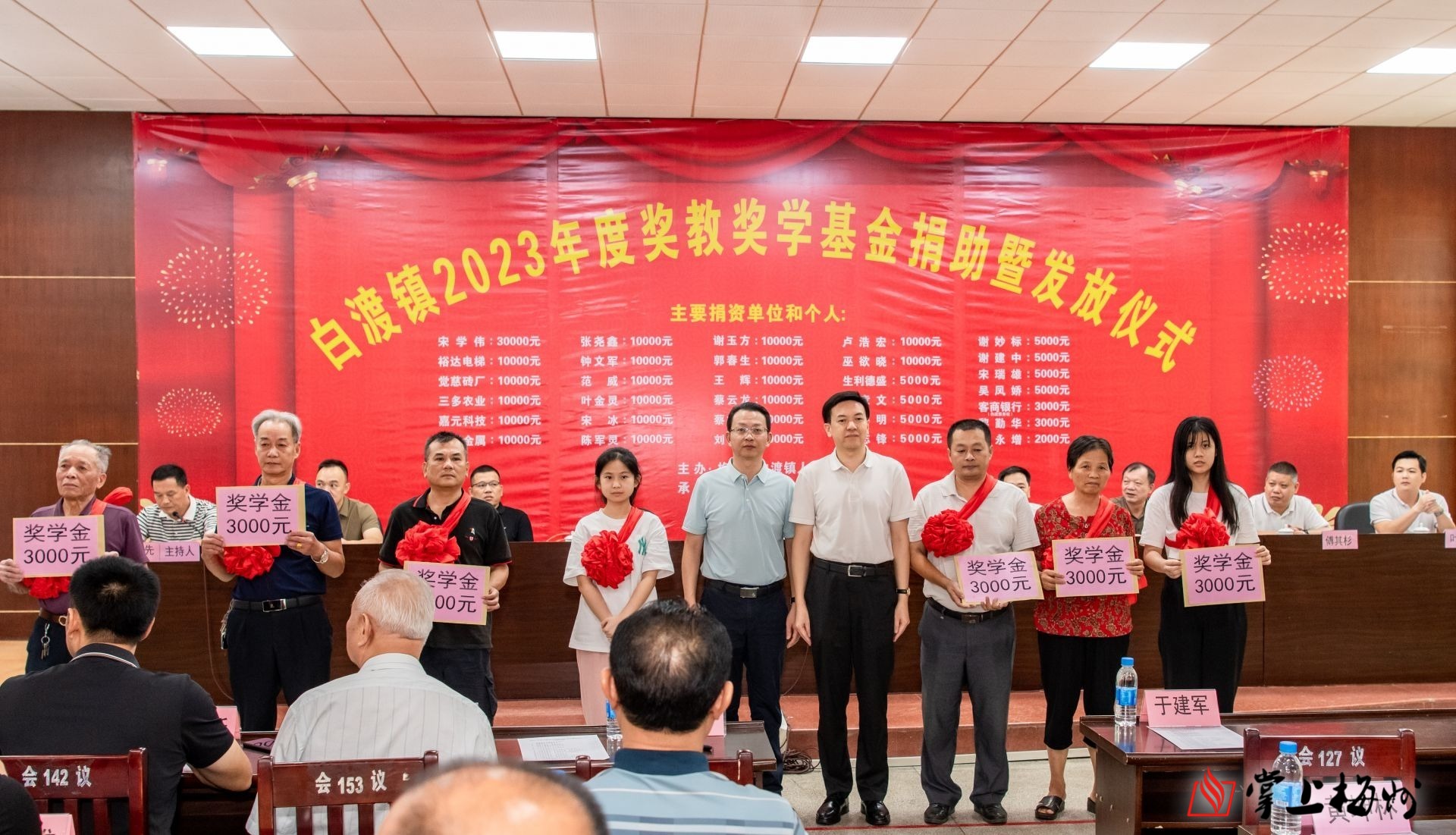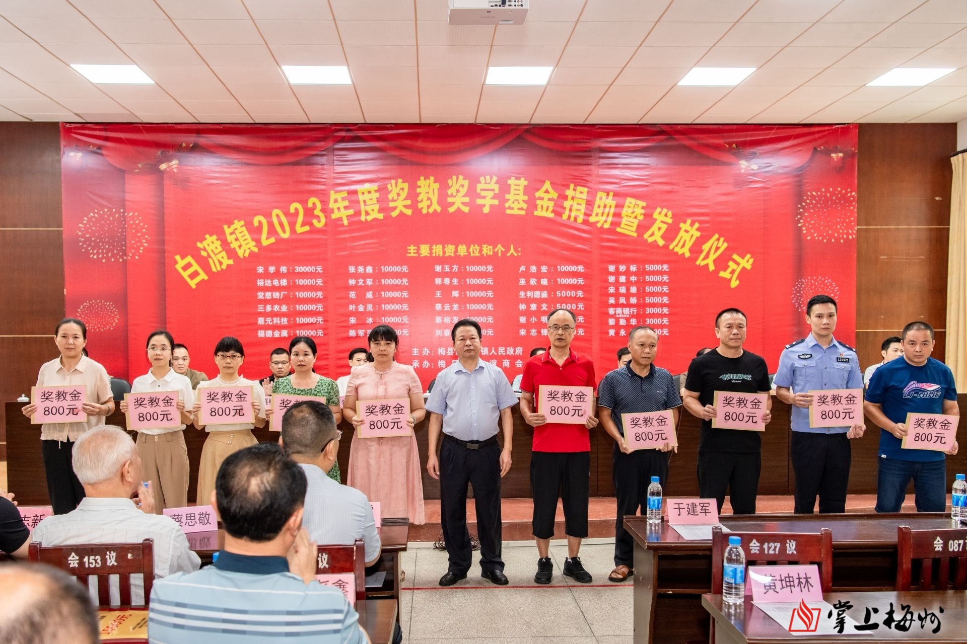 掌上梅州讯 8月19日上午,梅县区白渡商会举办2023年奖教奖学基金捐助暨发放仪式,为白渡镇优秀教育工作者和优秀学子发放奖教奖学金。梅县区人大常委会主任曾庆辉参加。