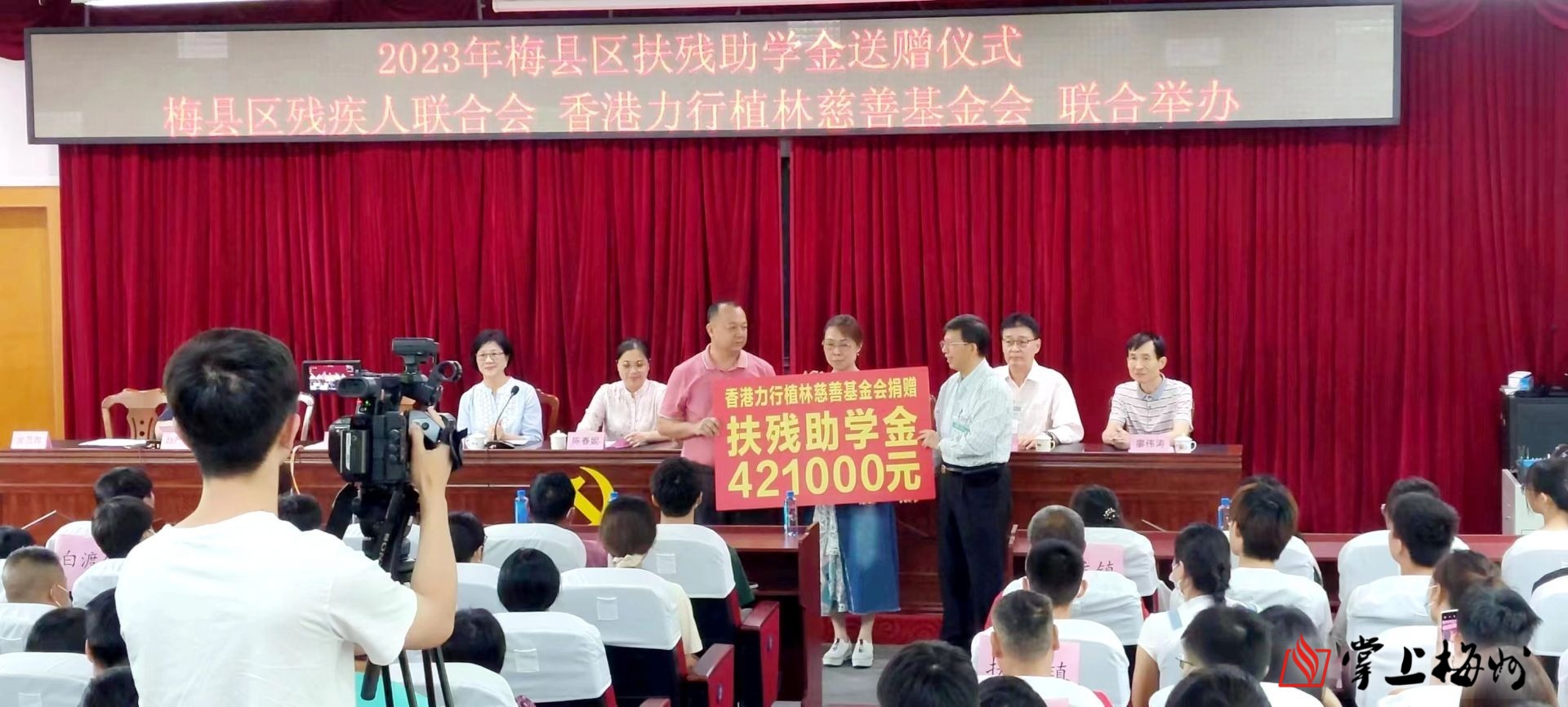 掌上梅州讯 8月24日上午,2023年梅县区扶残助学金送赠仪式在梅县区委党校举行,由香港力行植林慈善基金会和永义(香港)有限公司捐资人民币42.1万元,为梅县区156名困难残疾学生及残疾人家庭学生送赠助学金。