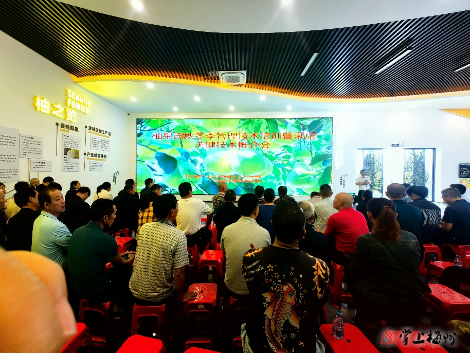 为了提升产业效益,减少果品采后损失,促进梅州柚产业高质量发展,进一步加强柚果园秋冬季管理水平,10月18日,由广东省农业科学院果树研究所、梅州市梅县区农业农村局、梅州市梅县区农业科学研究所和广东省农业科学院梅州分院主办的“柚果园秋冬季管理技术培训暨采后关键技术推介会”在梅县区召开。省农科院专家和来自嘉应学院、梅州市农林科学院果树研究所、梅县区农业科学研究所等单位的专业技术人员,以及梅县区及周边县(市、区)的种植专业户共100余人参加培训。