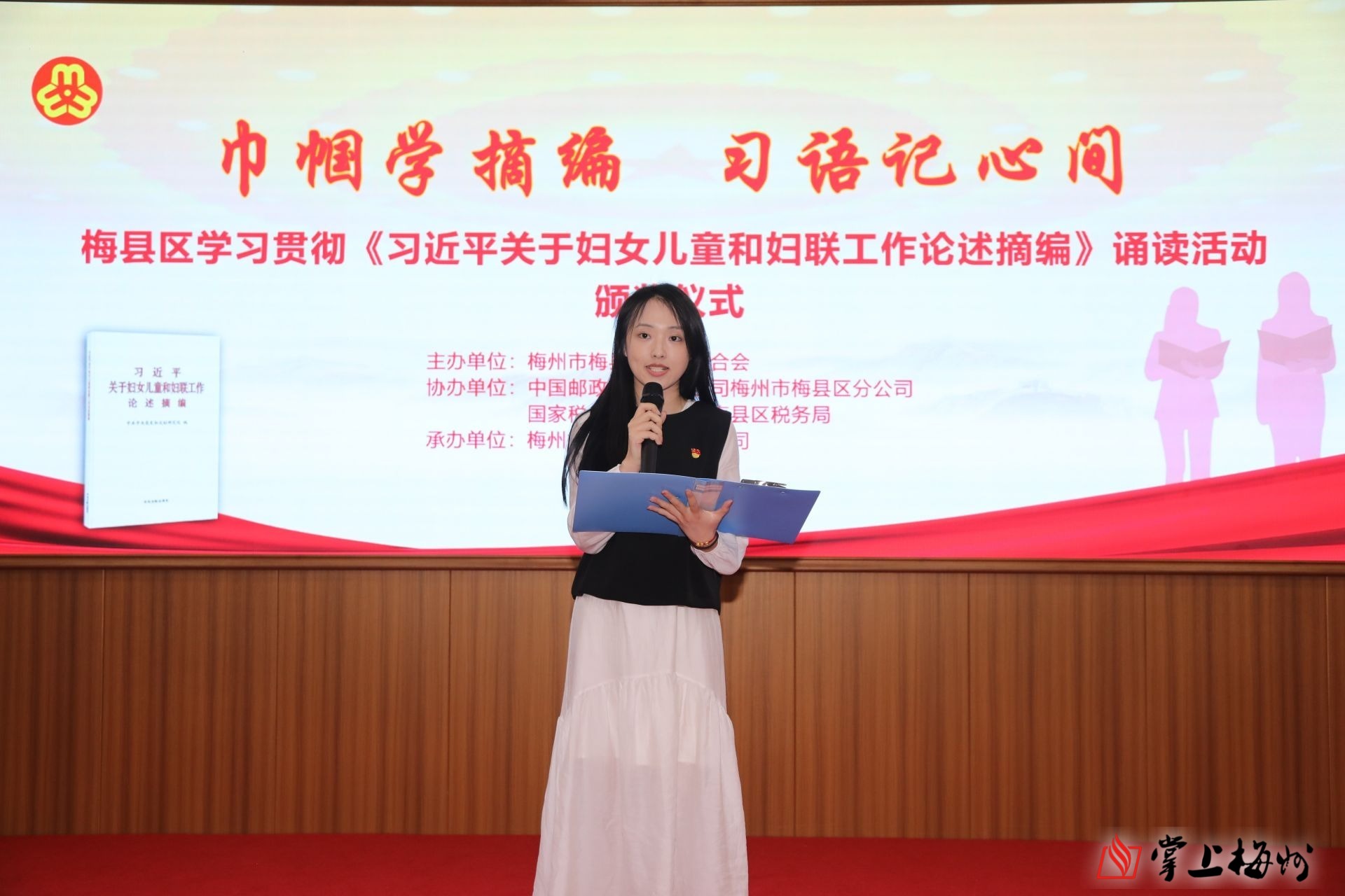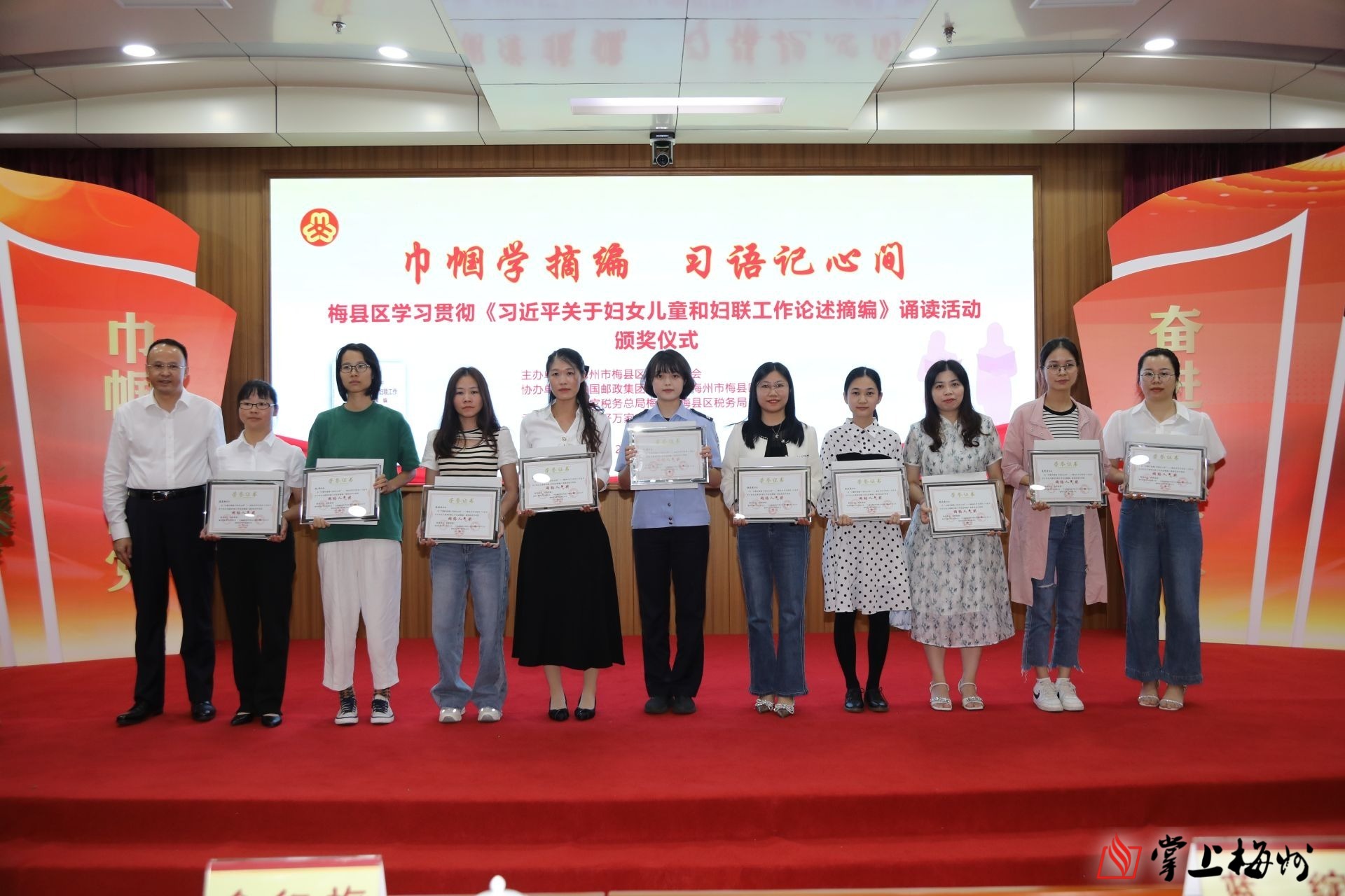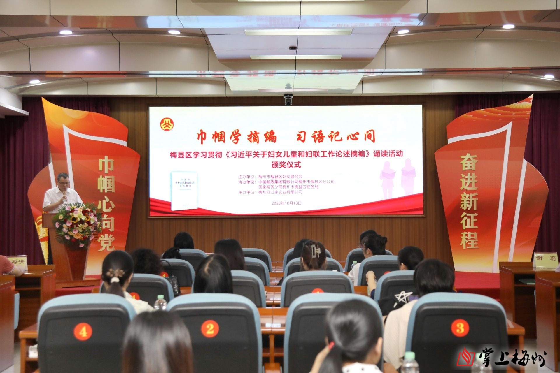 据了解,此次活动由梅县区妇联主办,中国邮政梅州市梅县区分公司、梅县区税务局协办,梅州好万家实业有限公司承办,以“巾帼学摘编,习语记心间”为主题,旨在进一步学习好、宣传好、贯彻好《习近平关于妇女儿童和妇联工作论述摘编》,教育引导广大妇女和家庭成员积极投身到新时代妇女儿童建设,主动担当、积极作为,以更加昂扬向上的姿态奋进新征程,为推动梅县老区苏区加快振兴、共同富裕贡献智慧和力量。