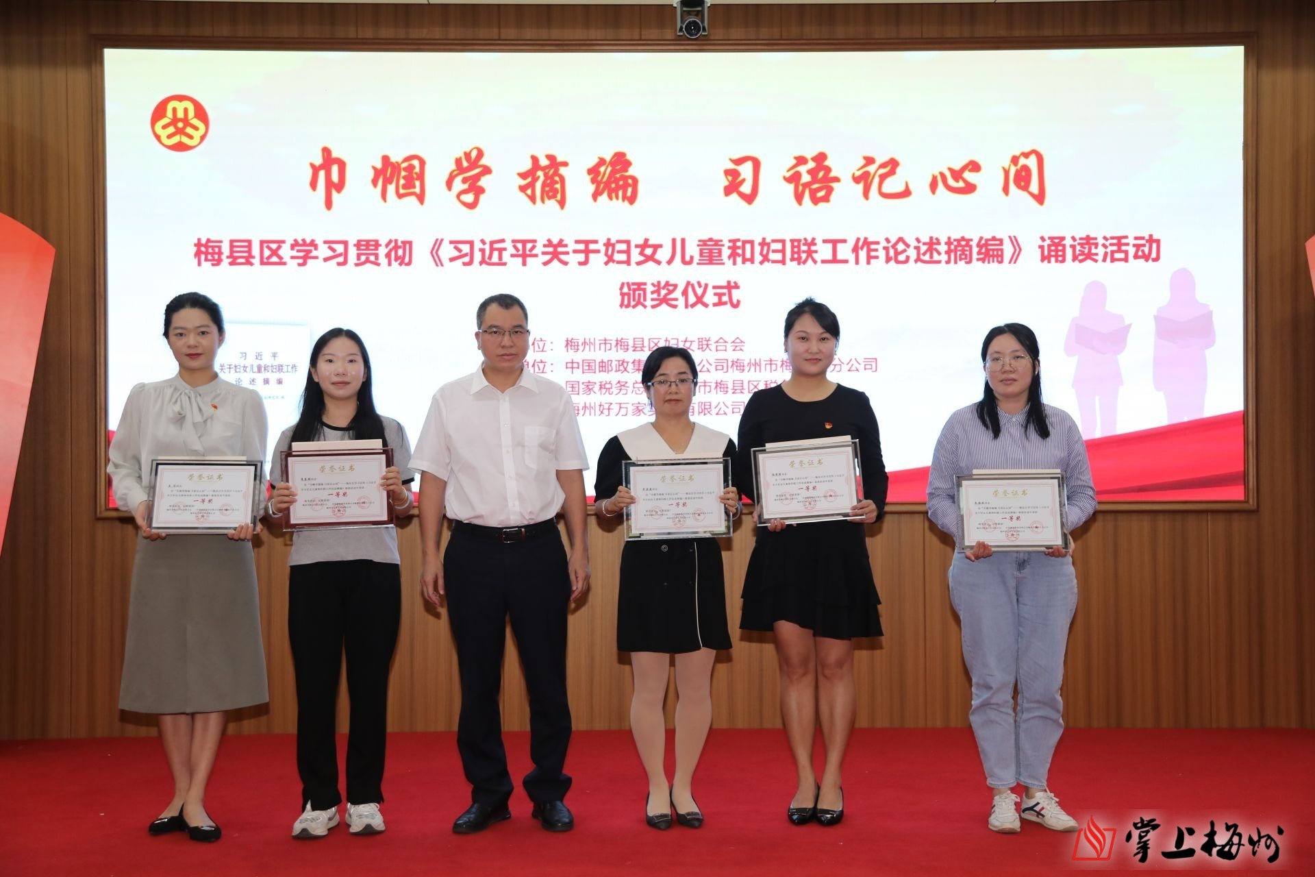 掌上梅州讯 10月18日,梅县区举行学习贯彻《习近平关于妇女儿童和妇联工作论述摘编》线上诵读活动颁奖仪式。梅县区委常委、组织部部长骆小锐参加。