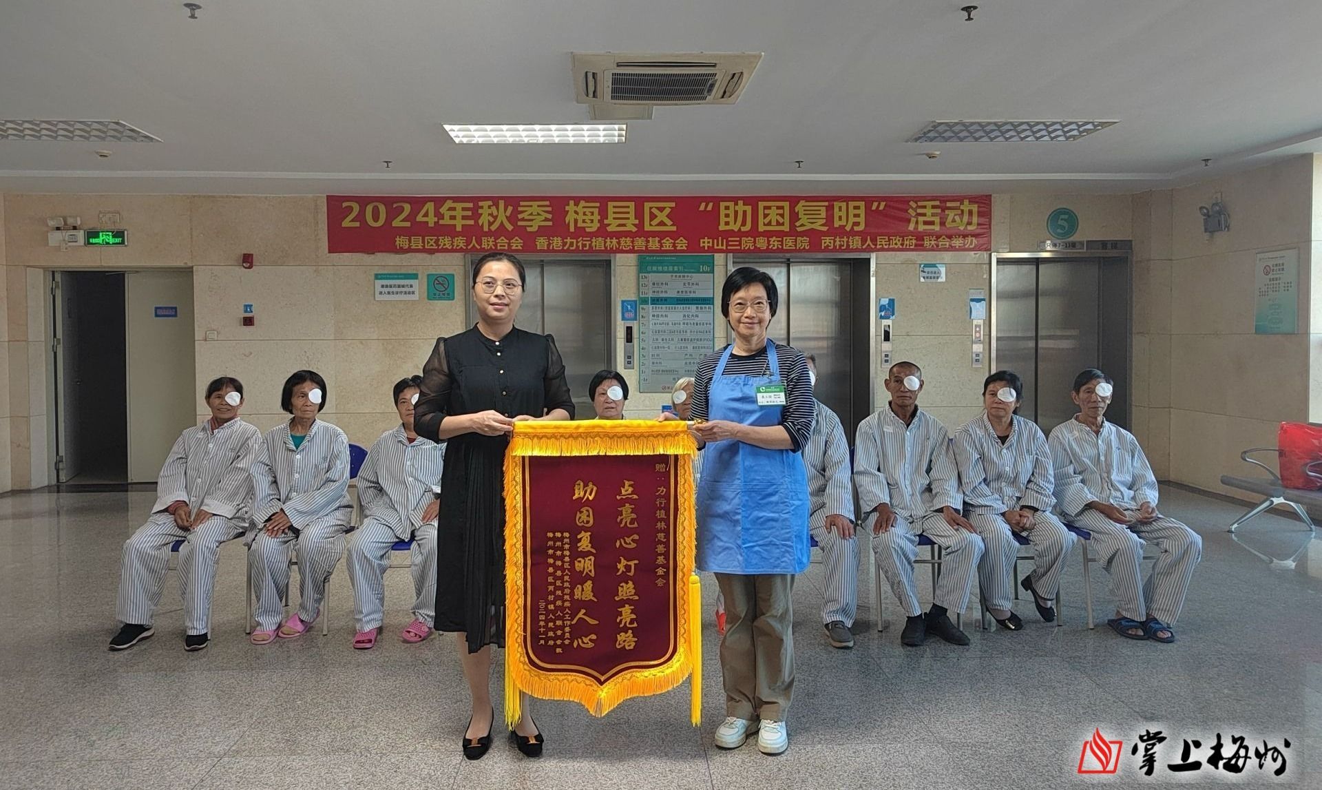 掌上梅州讯 11月6日,梅县区残联、力行植林慈善基金会、中山大学附属第三医院粤东医院、梅县区丙村镇人民政府在中山大学附属第三医院粤东医院联合举行2024年秋季“助困复明”活动。活动中,梅县区副区长陈春妮向香港力行植林慈善基金会的善举表示感谢,并赠送锦旗。