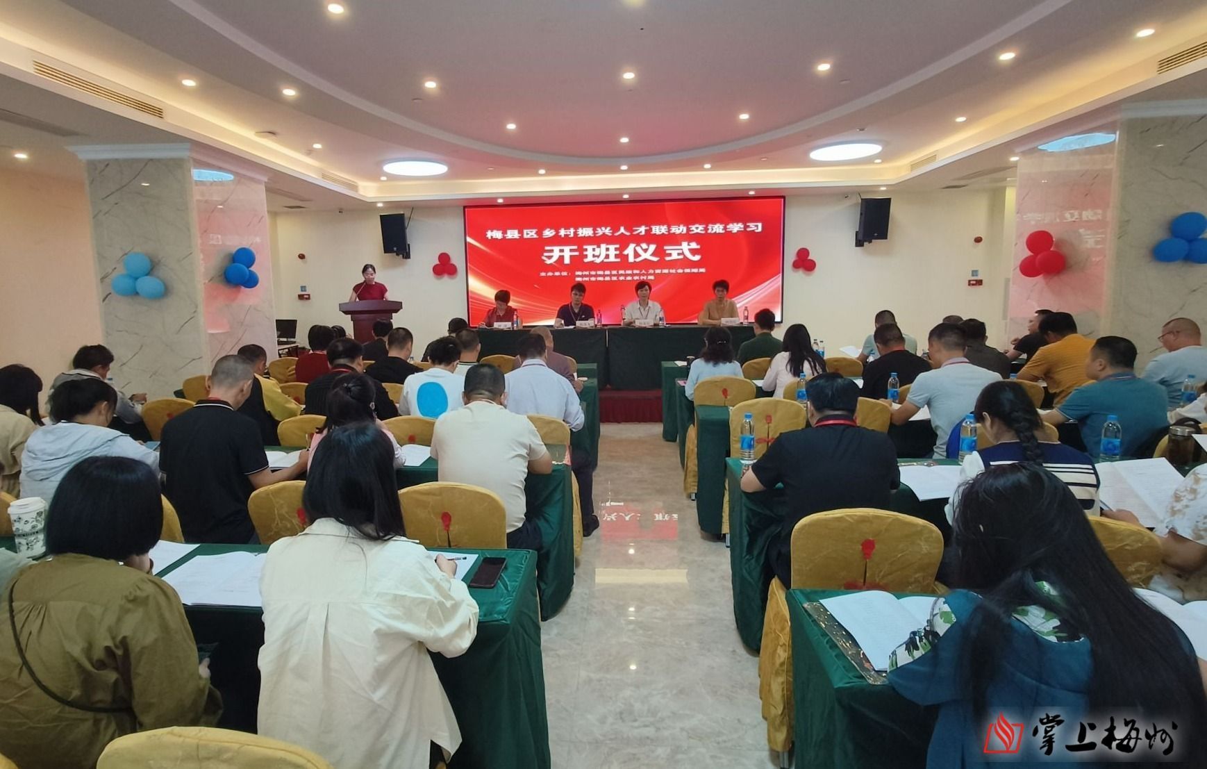 掌上梅州讯 11月6日上午,梅县区乡村振兴人才联动交流学习开班仪式在五华举行。梅县区委组织部、梅县区民政和人社局、梅县区农业农村局、镇级乡村振兴人才驿站工作人员及梅县区产业村长、新型农业经营主体、村党支部书记代表近60人参加为期两天的学习。