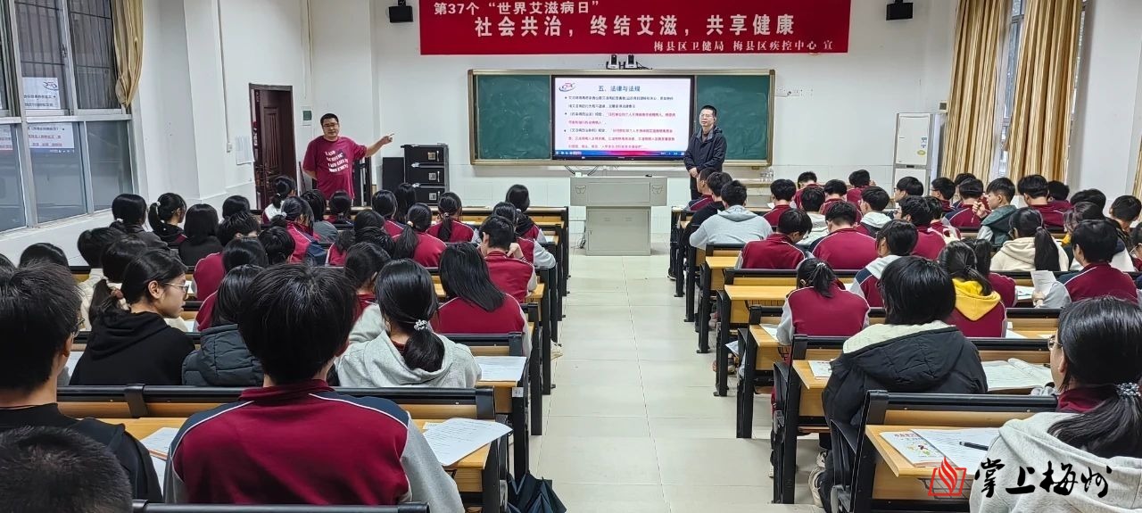 掌上梅州讯 11月25日至28日,梅县区卫生健康局联合梅县区教育局、梅县区民政和人社局、梅县区禁毒办等部门,在华侨中学、高级中学、梅县技工学校开展2024年梅县区“世界艾滋病日”主题宣传活动,旨在提高学生艾滋病防治知识水平,树立正确的人生观,倡导健康生活方式,保护青少年身心健康。