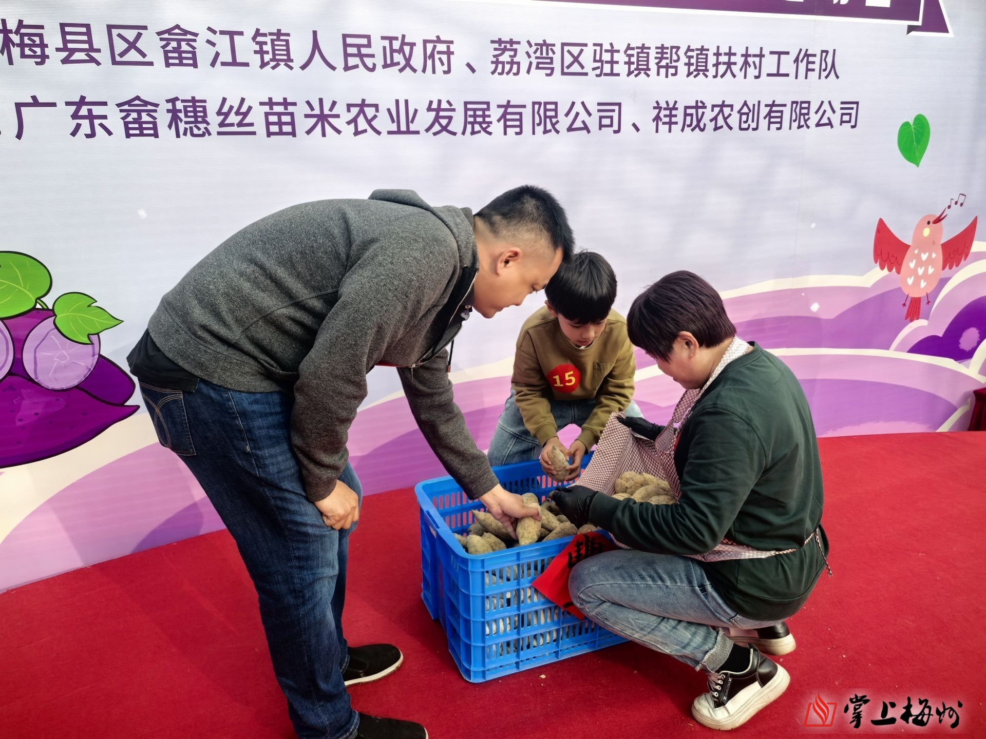 据了解,梅县区畲江镇政府、荔湾区驻畲江镇帮镇扶村工作队主办,广东畲穗丝苗米农业发展有限公司、广东祥成农创帮扶科技开发有限公司协办,旨在加强径义甘薯的宣传,进一步打响径义甘薯品牌,帮助村民提高径义甘薯的销量,助力“百千万工程”。
