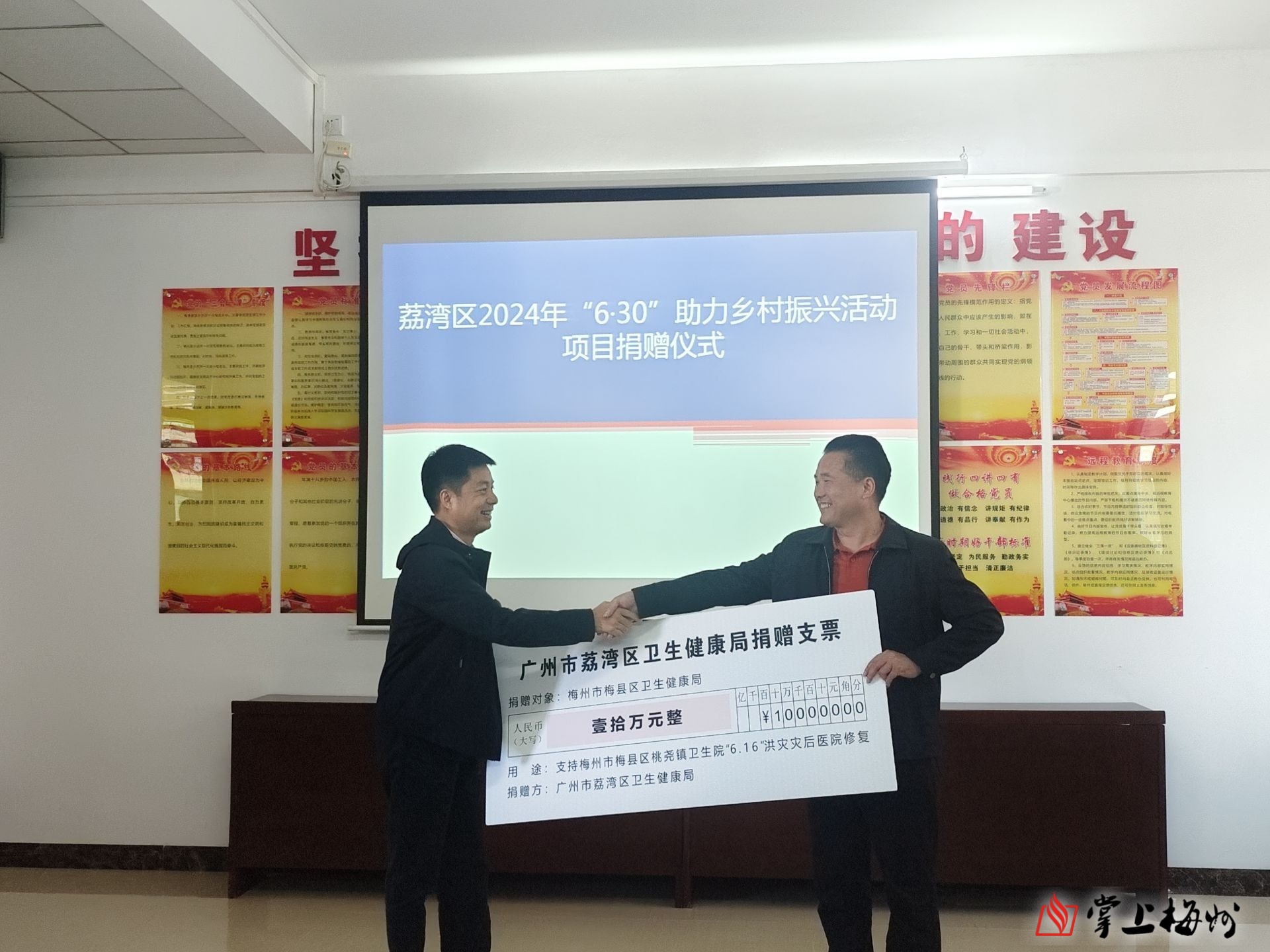 随后,还举行了定向捐赠仪式,由荔湾区卫生健康局向桃尧镇卫生院捐赠十万元现金,用于基层医疗服务能力建设,助力乡村振兴。