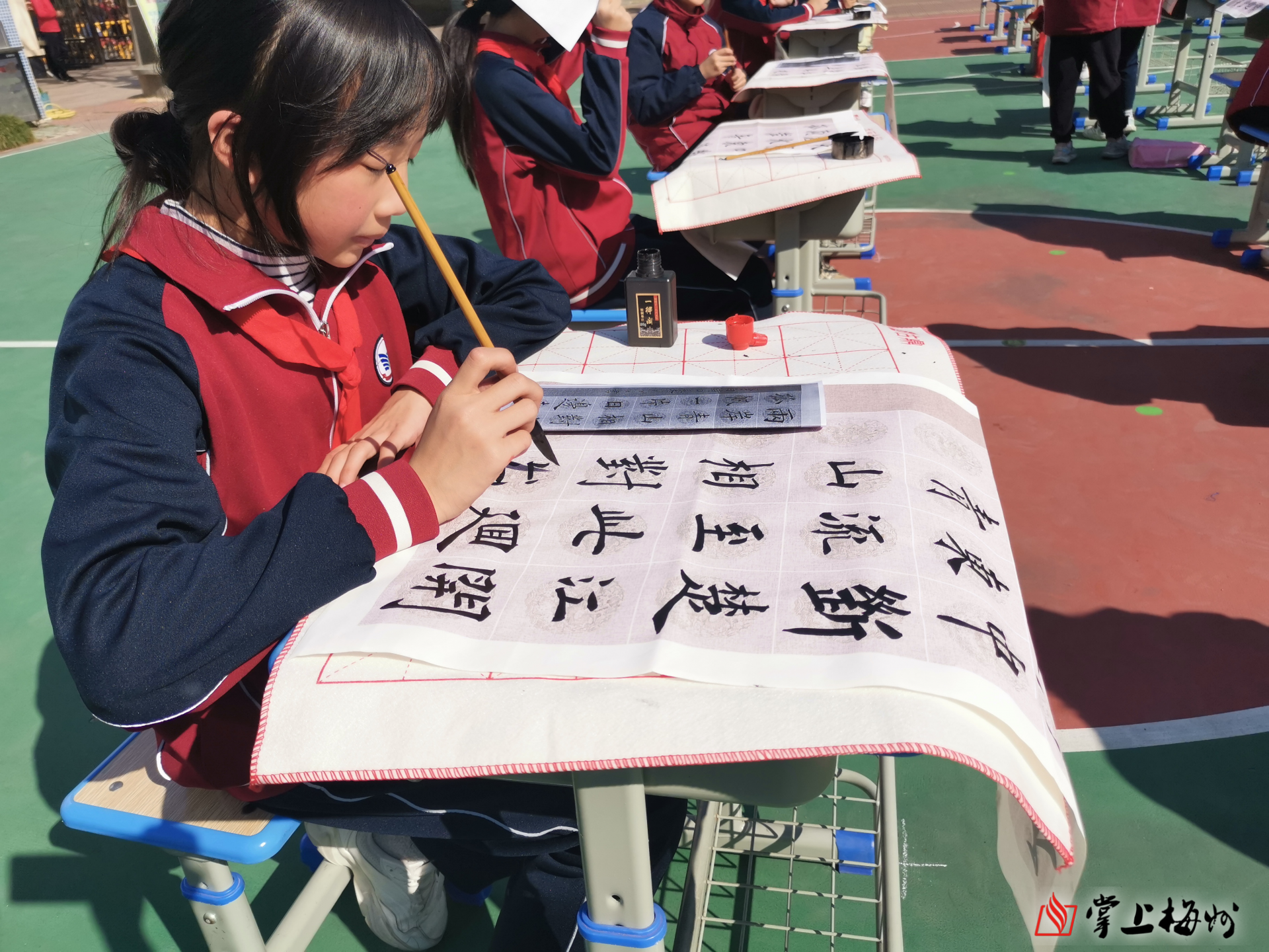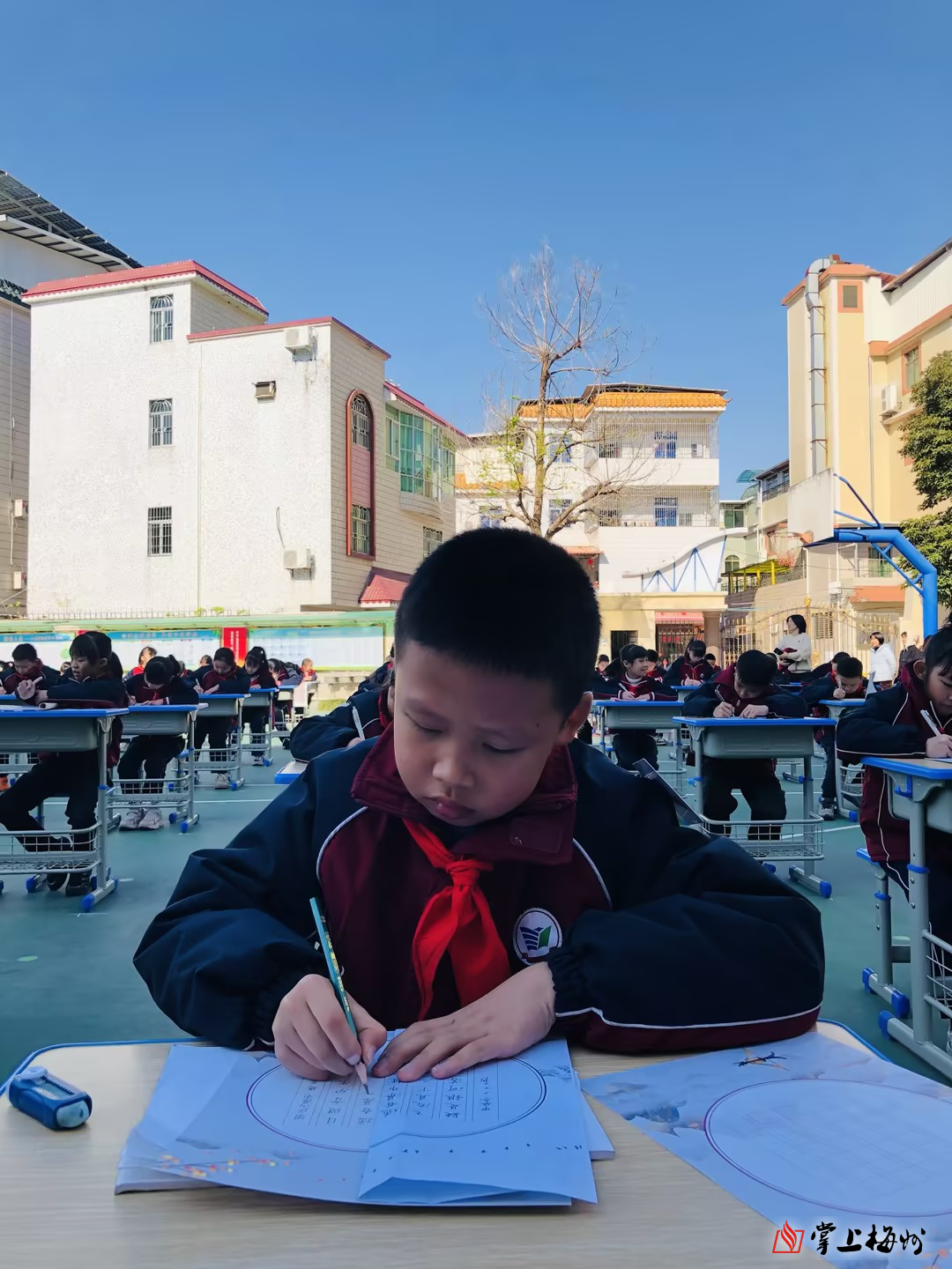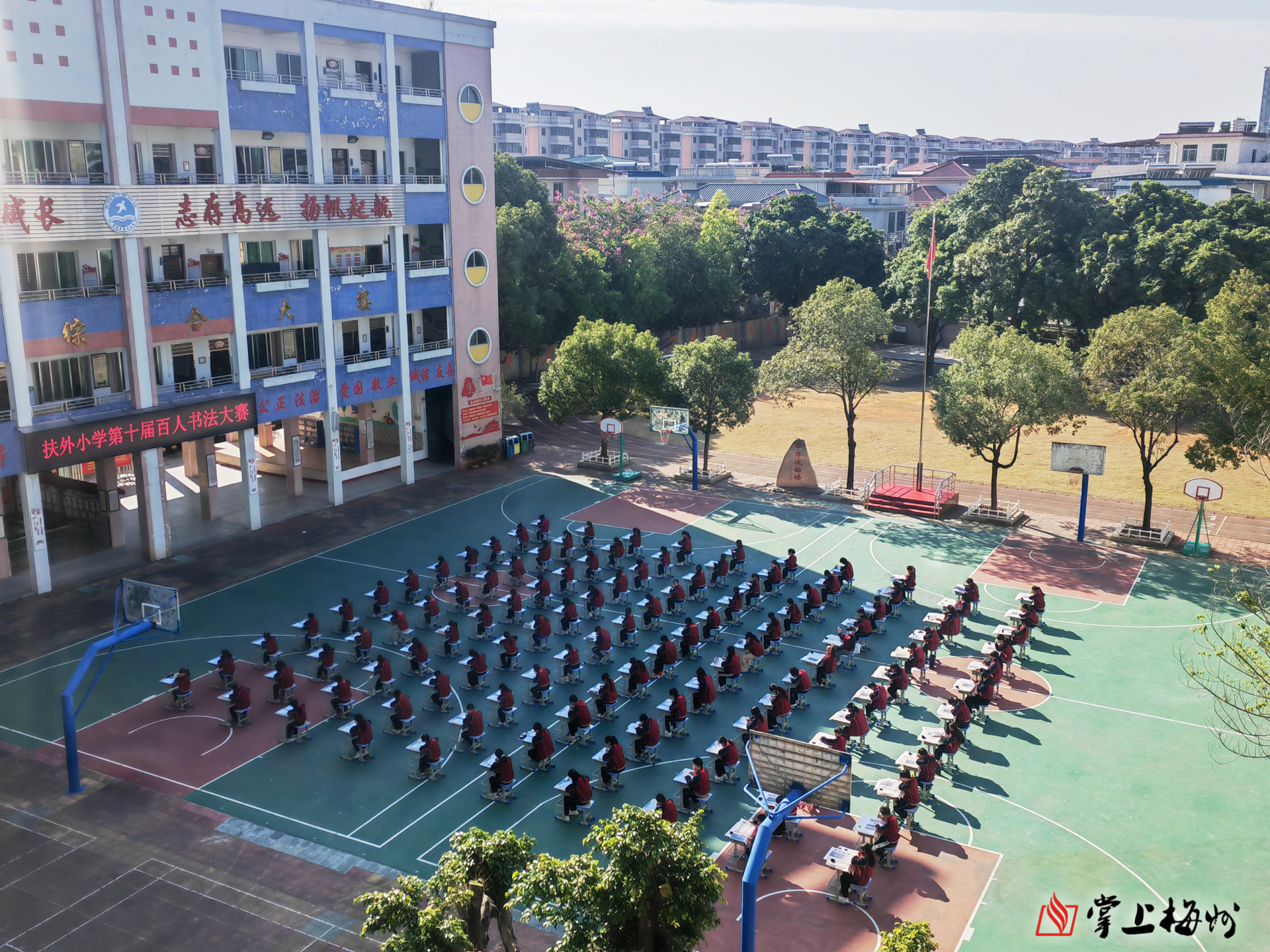 掌上梅州讯 12月18日,梅县区扶外小学举行以“传承翰墨 书法育人”为主题的第十届百人书法大赛,旨在进一步传承和弘扬中华优秀传统文化,激发学生对传统文化和语言文字的热爱之情,全面落实“一笔一划写字,一言一行立德”的育人理念,打造书法育人的办学特色。