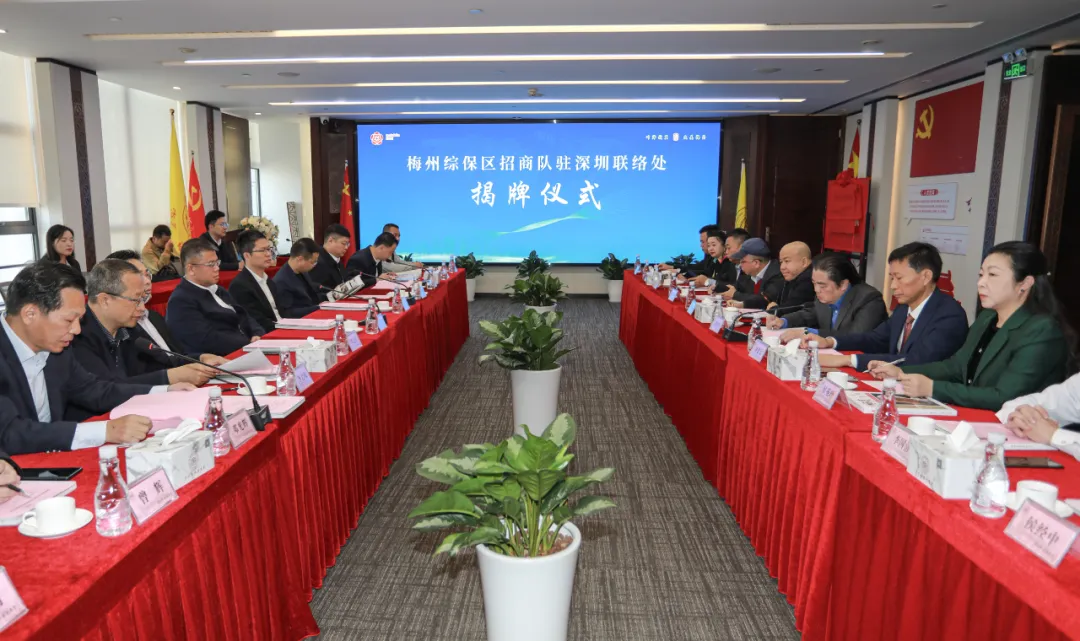 推介会前,市委常委、统战部部长崔毅带队到深圳市梅县商会调研,与在深部分梅州籍企业家座谈交流,并为梅州综保区招商队驻深圳联络处揭牌。