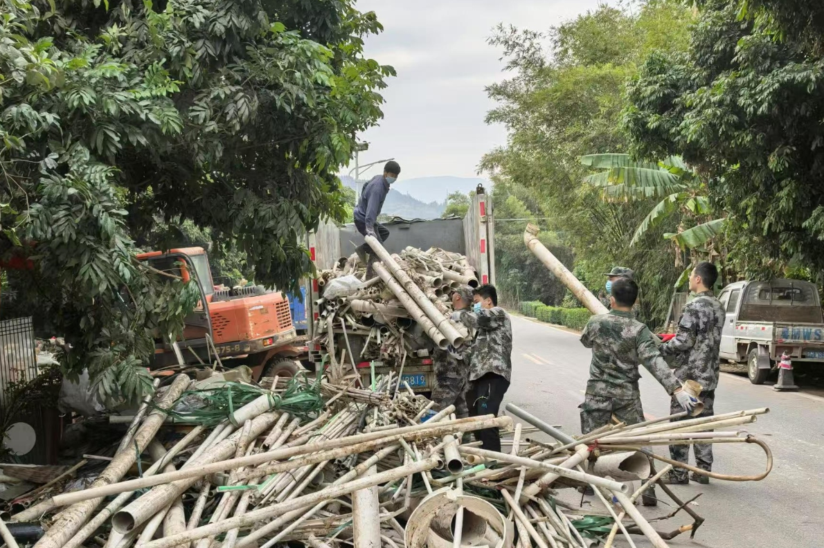 白渡镇对标对标组织镇应急队到悦一村协助开展三线整治,拆除村委附近矮旧房屋、清理废品店周边垃圾,优化村委会功能布局,美化村委广场环境,提升悦一村村容村貌。此外,白渡镇为更高效、全面做好典型村建设工作,镇村干部协同发力,按“包片到户”模式,明确网格责任领导,对村民房前屋后开展环境卫生清理整治行动。
