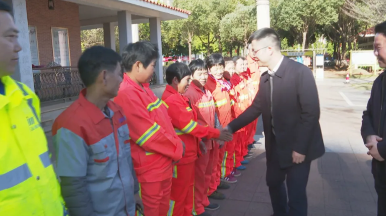 王锋还来到梅县人民广场,看望慰问一线环卫工人和城管队员,对他们的默默坚守表示感谢并送上新春的祝福。王锋指出,环卫工人和城管队员昼夜奔波在一线,为维护良好的市容环境付出了辛勤努力,叮嘱住建等部门要加强关心关爱。希望继续发扬吃苦耐劳精神,为创造更加干净整洁有序的市容环境作出积极贡献。王锋强调,春节期间人流密集、活动众多、商贸旺盛,各类安全风险需高度关注。各级各部门要树牢底线思维,以“时时放心不下”的责任感,加强值班值守、督导检查和应急准备,紧盯道路交通、消防安全、烟花爆竹、城镇燃气、景区景点、食品安全等重点行业领域,聚焦大型综合体、商贸市场、餐饮场所等人员密集场所,以及大型群众性活动等,全面加强风险隐患排查整治,毫不松懈抓好森林防灭火工作,强化社会面巡防管控,兜牢困难群体民生保障底线,全力保障人民群众度过一个欢乐祥和的新春佳节。