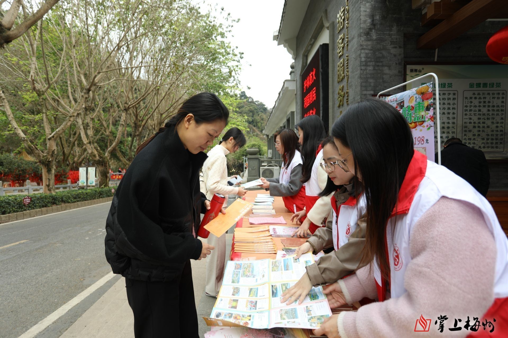 掌上梅州讯 2月11日下午,梅县区文化广电旅游体育局在梅县区雁洋镇灵光寺旅游区开展文明旅游志愿服务宣传活动,号召广大游客“爱护景区环境、遵守公共秩序。文明旅游,从我做起”。