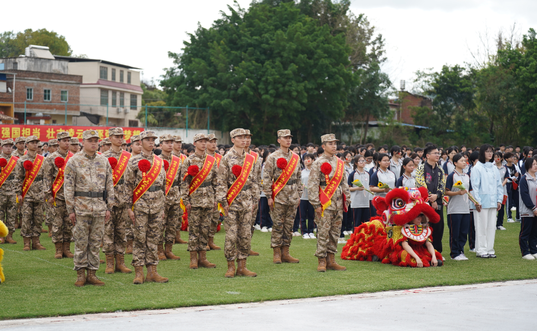掌上梅州讯 3月13日,梅县区举行2025年上半年新兵入伍欢送大会暨国防教育进校园活动。该区以“村送镇、镇送区、区送部队”的“三送活动”为载体,通过强烈的仪式感,为即将踏上军旅征程的入伍新兵送上深情嘱托与崇高敬意。