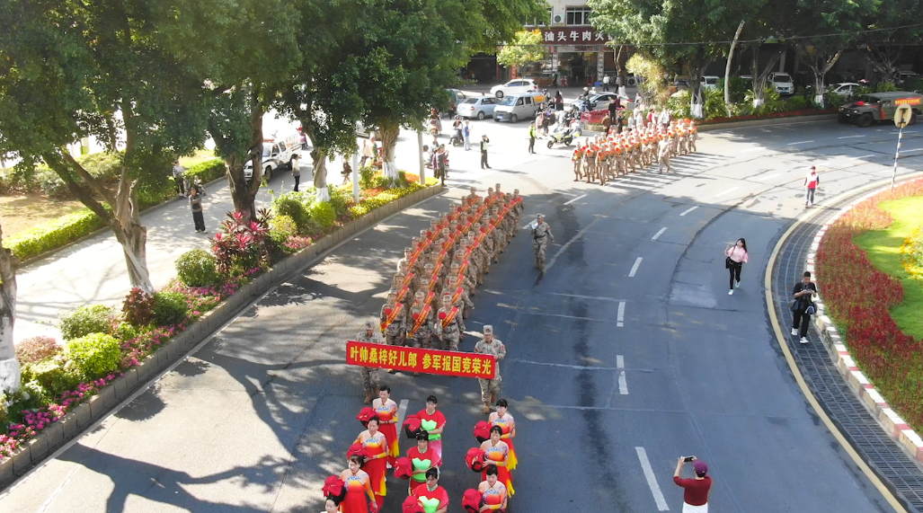 一大早,镇村干部为入伍新兵佩戴象征荣誉的“光荣入伍”绶带和大红花,乡亲们夹道相送。随后新兵队伍集结至梅县区人武部营区,一场盛大的“热血巡游”拉开帷幕。