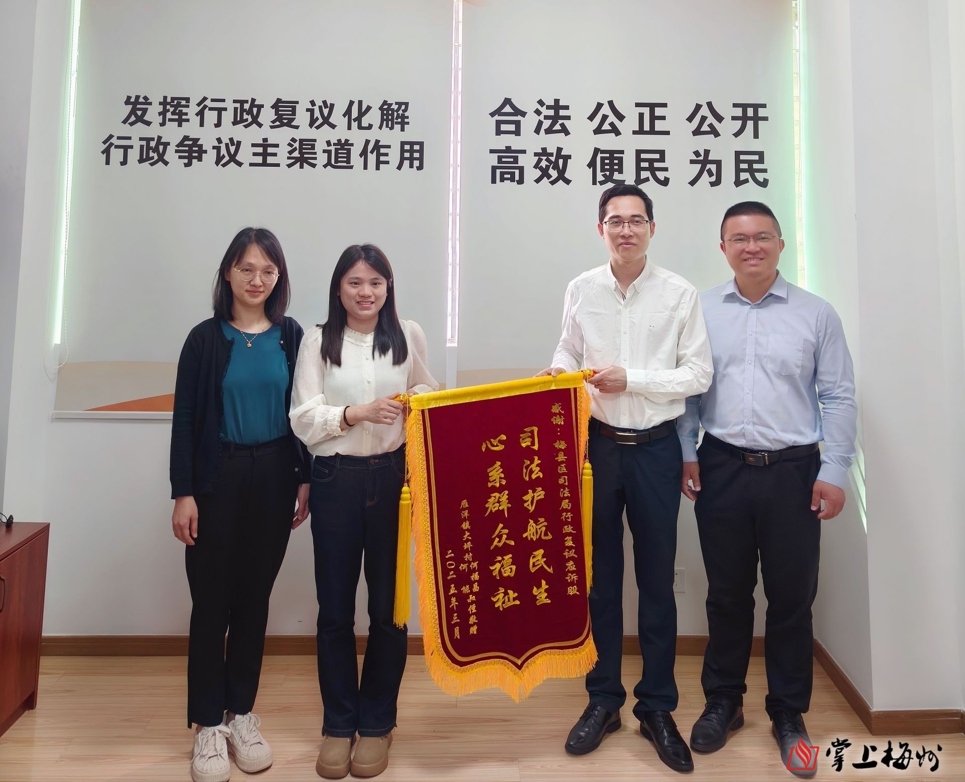 为了表达感激之情,申请人特意送来了锦旗。他们表示,梅县区司法局行政复议机构切实维护了老百姓的合法权益,让他们感受到了公平正义。