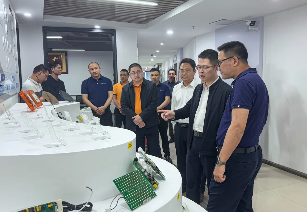在深圳市澜潮科技有限公司、深圳市华皓伟业光电有限公司、东莞创芯人智造自动化设备有限公司、大族激光全球智造中心,王锋一行通过参观产品展厅、厂房车间和座谈交流等方式,分别了解企业在新能源网络通信与感知技术、高光效汽车LED产品制造、标准化零部件设计制造、智能制造装备等领域的创新成果、场景应用、市场布局及上下游配套需求等情况,并邀请企业到梅县实地考察。王锋表示,当前,梅县区坚持实体经济为本、制造业当家,充分用好国家两部委《梅州方案》和省《若干措施》等政策,依托“一园一区一港一地”融湾发展平台,落实招商引资“一把手”工程,加强链式招商、以商招商、基金招商等,加速融入大湾区产业链、创新链、供应链,积极推动研发孵化在湾区、生产制造在梅县,不断发展壮大高端铜箔、机械智造、智能家电“2+1”主导产业,大力培育新材料、新型储能、人工智能等新兴产业。澜潮科技是一家专注“源•网•荷•储” 通信与感知解决方案的国家高新技术企业、专精特新企业,近三年增长率保持50%以上。希望双方能够进一步加强沟通对接,依托澜潮科技的高速发展,推动梅县的包装耗材、电线电缆等中小企业进入澜潮科技产业链供应商体系。同时通过技术输出,培育壮大本土“四上”企业。创芯人是一家综合性数字供应链管理平台型高新技术企业,与华皓伟业、大族激光等国家高新技术企业有着紧密的合作关系,希望创芯人立足梅县智能智造产业数字化生产基地(华南示范中心)项目建设,充分发挥企业作用,积极搭建政企桥梁纽带,深入挖掘产业链、供应链上下游投资意向和项目,通过以商招商、以投代引、定向采购等方式,带动更多配套企业落户,推动梅县产业链融通发展。