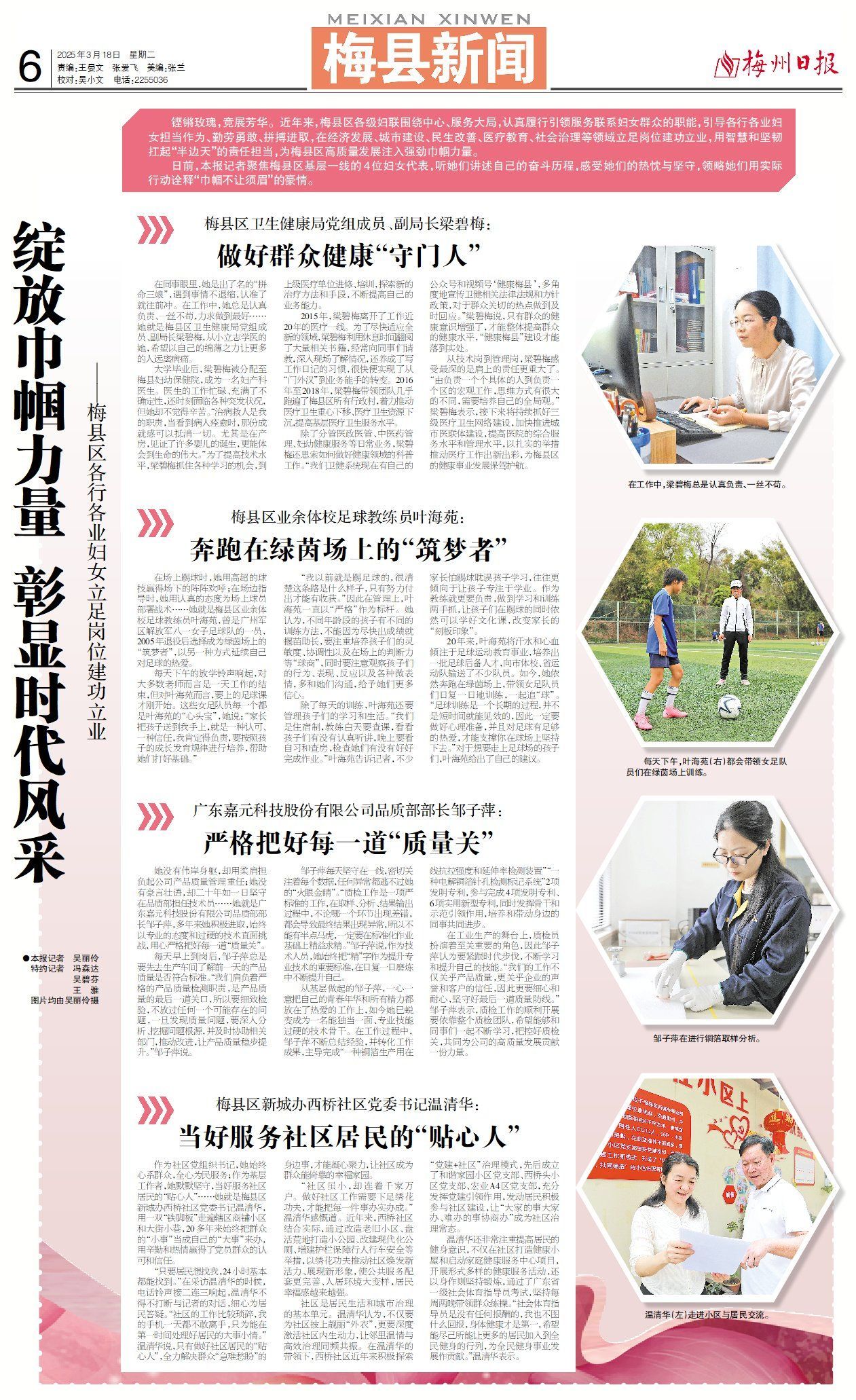 日前,本报记者聚焦梅县区基层一线的4位妇女代表,听她们讲述自己的奋斗历程,感受她们的热忱与坚守,领略她们用实际行动诠释“巾帼不让须眉”的豪情。
