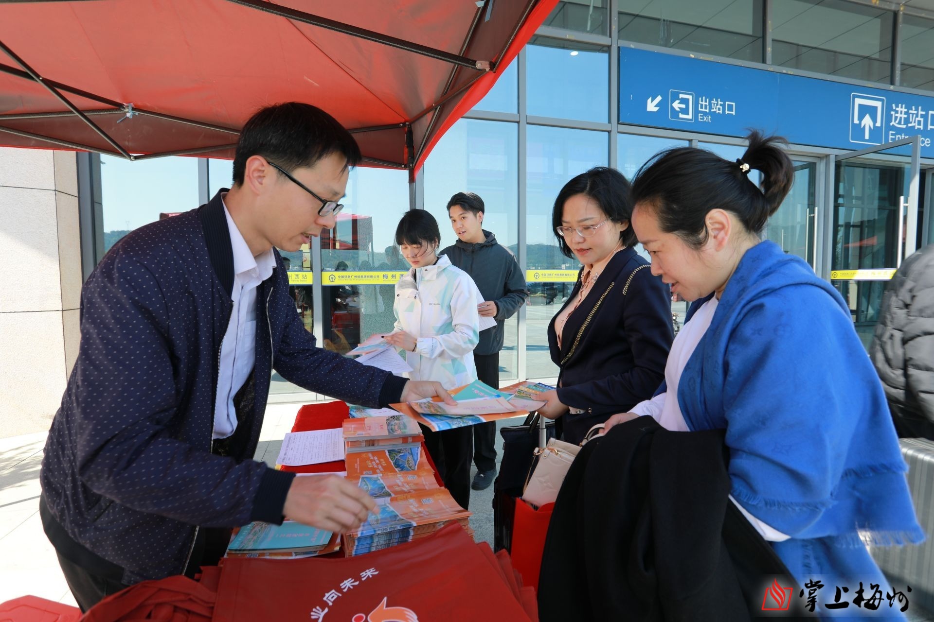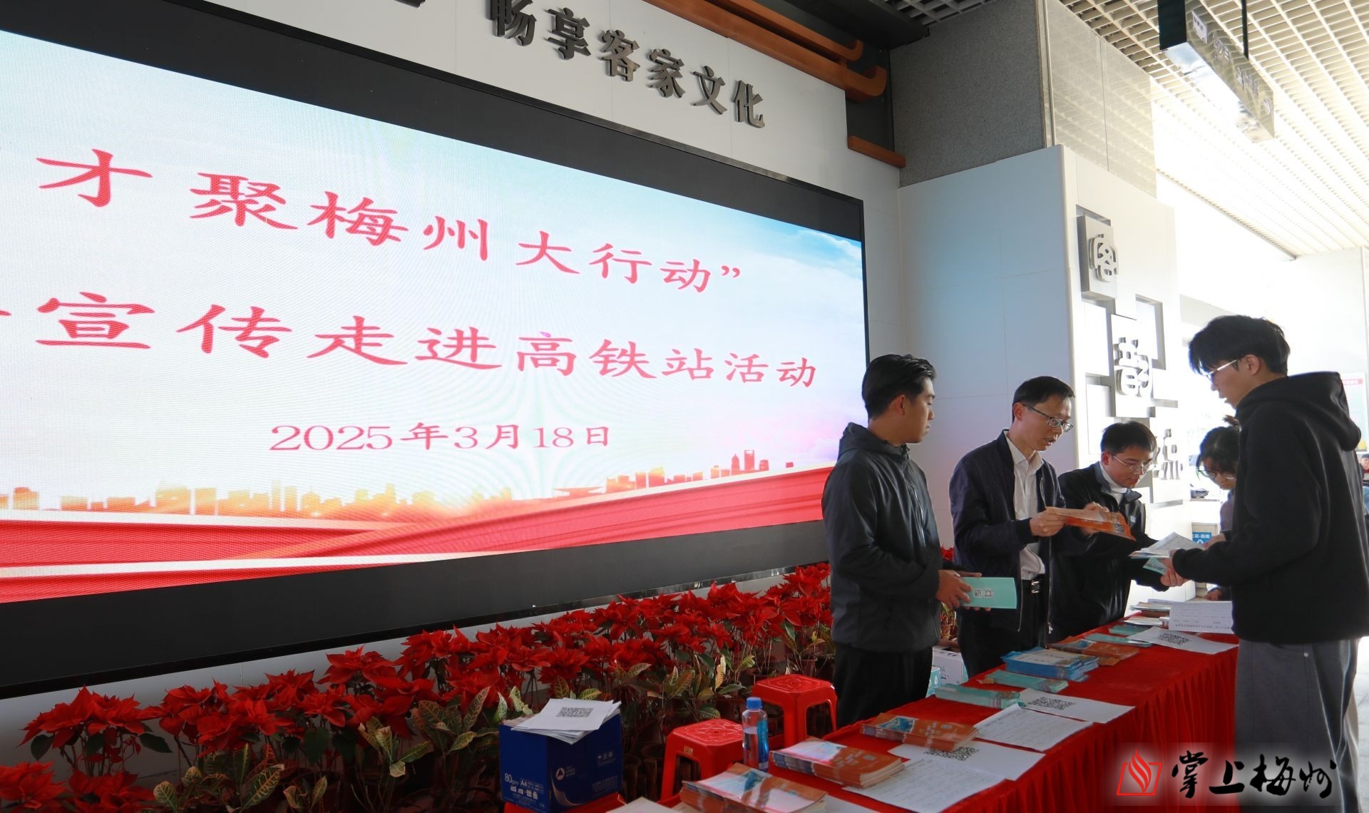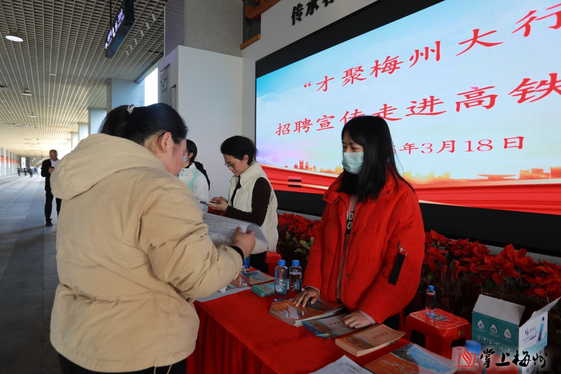 掌上梅州讯 3月18日下午,梅县区在高铁梅州西站开展“才聚梅州大行动”招聘宣传进高铁站活动。