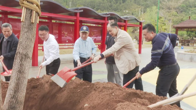 调研结束后,廖万清院士来到桃尧镇金柚文化广场,种下一棵象征希望与发展的香樟树。这棵新栽的香樟树与多年前廖万清院士在此亲手种下的王老吉树遥相呼应,两棵树木并肩挺立,不仅为绿美生态建设增添了一抹新绿,更见证着院士与家乡的深厚情谊。