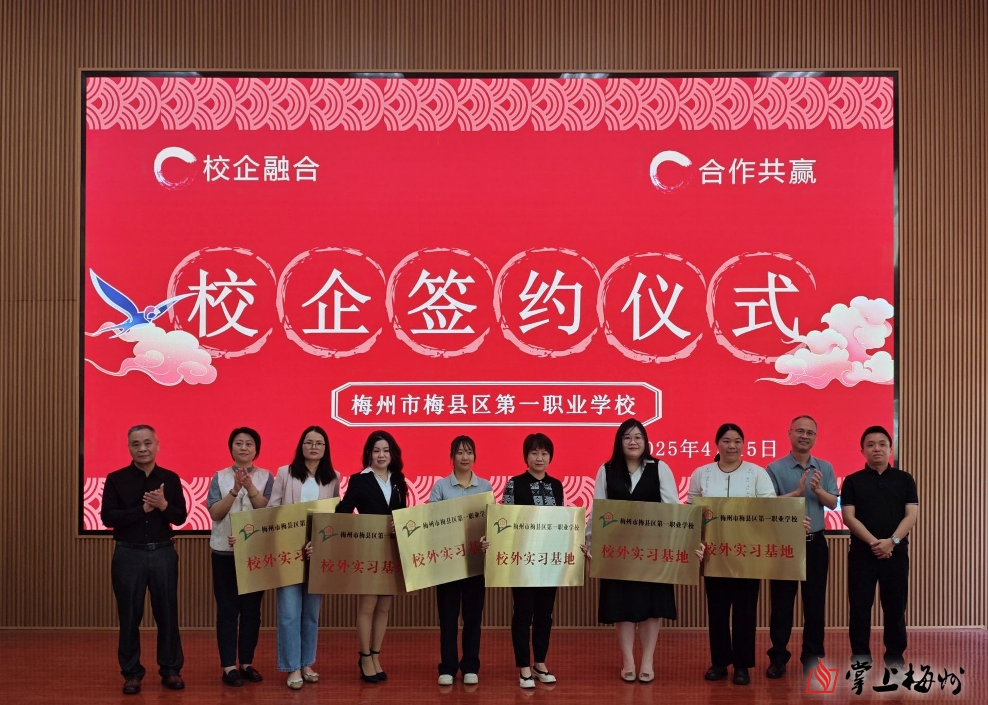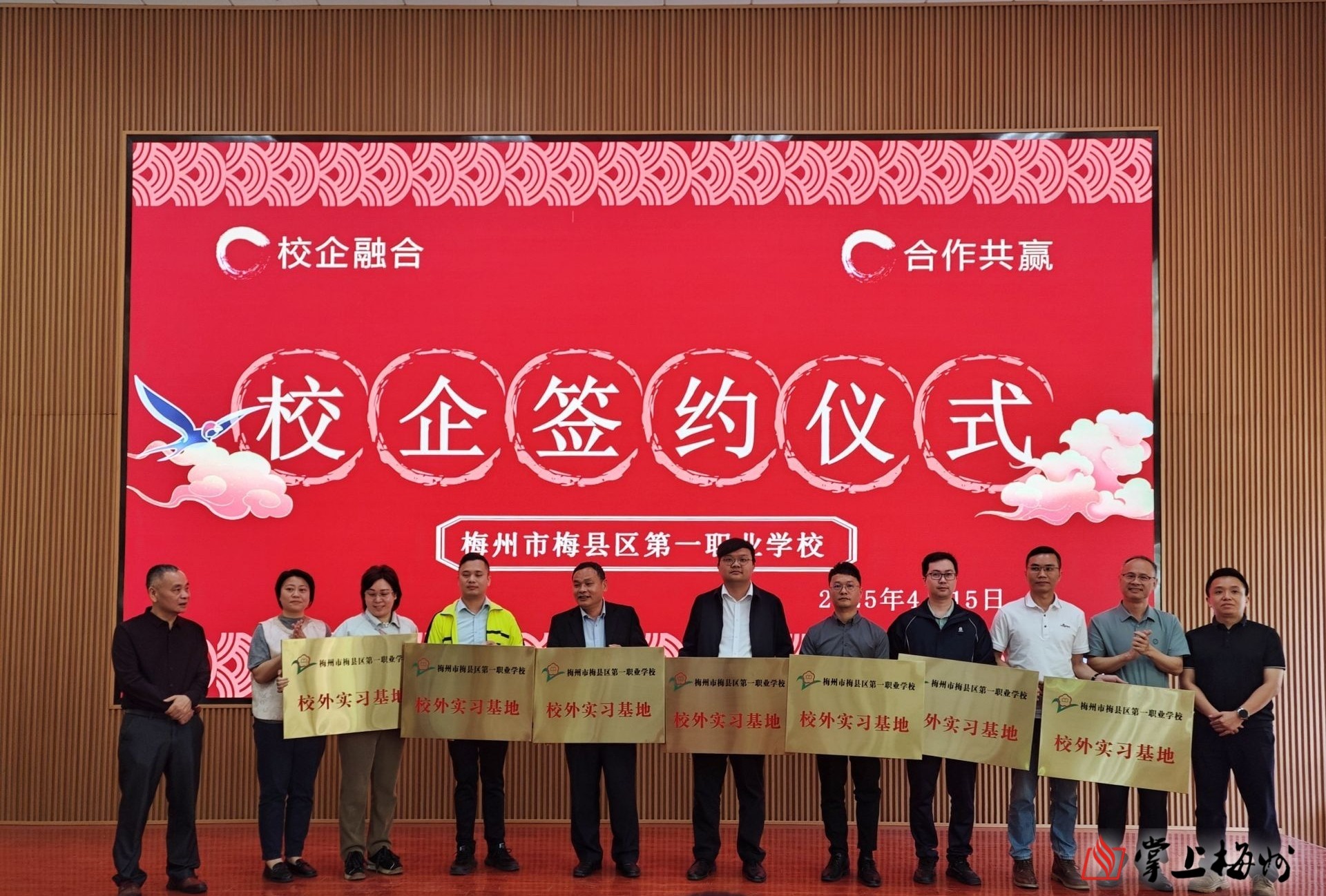 掌上梅州讯 4月15日上午,梅州市梅县区第一职业学校举行与合作企业共建校外实训基地的签约、授牌仪式,进一步促进职业教育人才培养与教学实践的双向融合。