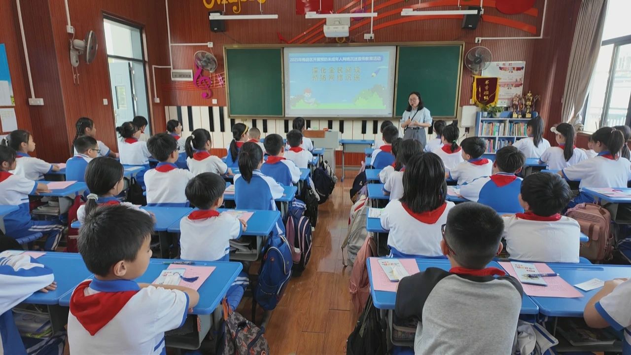 活动序幕拉开,“扫黄打非·护苗成长”“深化全民阅读·预防网络沉迷”“非遗传承培训公益课堂”等系列活动走进广东梅县外国语学校小学部409班课堂。现场通过发放“绿书签”、观看短片及版权知识、非遗文化的科普等方式,引导学生识别网络有害信息,培养健康的阅读习惯;激发他们对传统文化的兴趣与创造力,在动手实践中深化非遗保护意识,为文化传承注入新生力量。