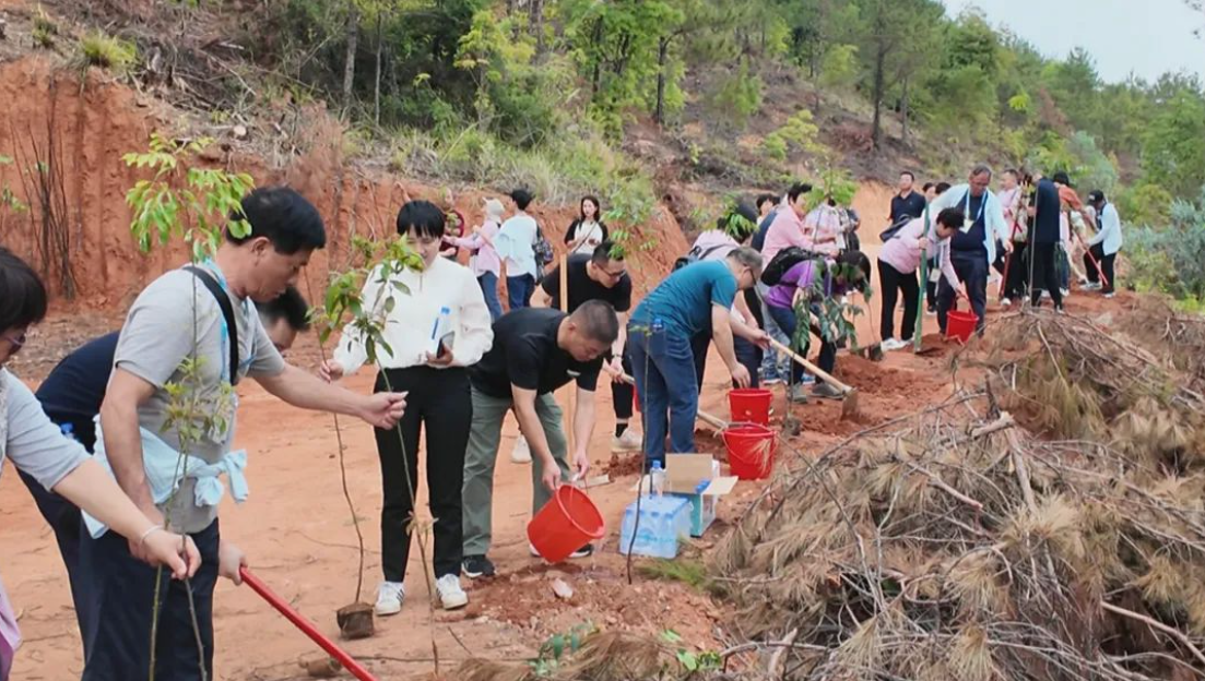 交流团一行首先来到梅县人民公园开展“回乡聚力·绿美梅县”植树活动,此次活动累计捐款3万元。大家干劲十足、分工协作,现场一派热火朝天的景象。经过一番辛勤劳作,一株株树苗扎根沃土,焕发出盎然生机,为“香港南口同乡林”增添了葱葱绿意。随后,交流团一行驱车前往南口镇车陂村和侨乡村进行调研,通过现场参观、听取介绍的形式,详细了解南源世第文旅产业发展和侨乡村传统村落集中连片保护利用工作情况。