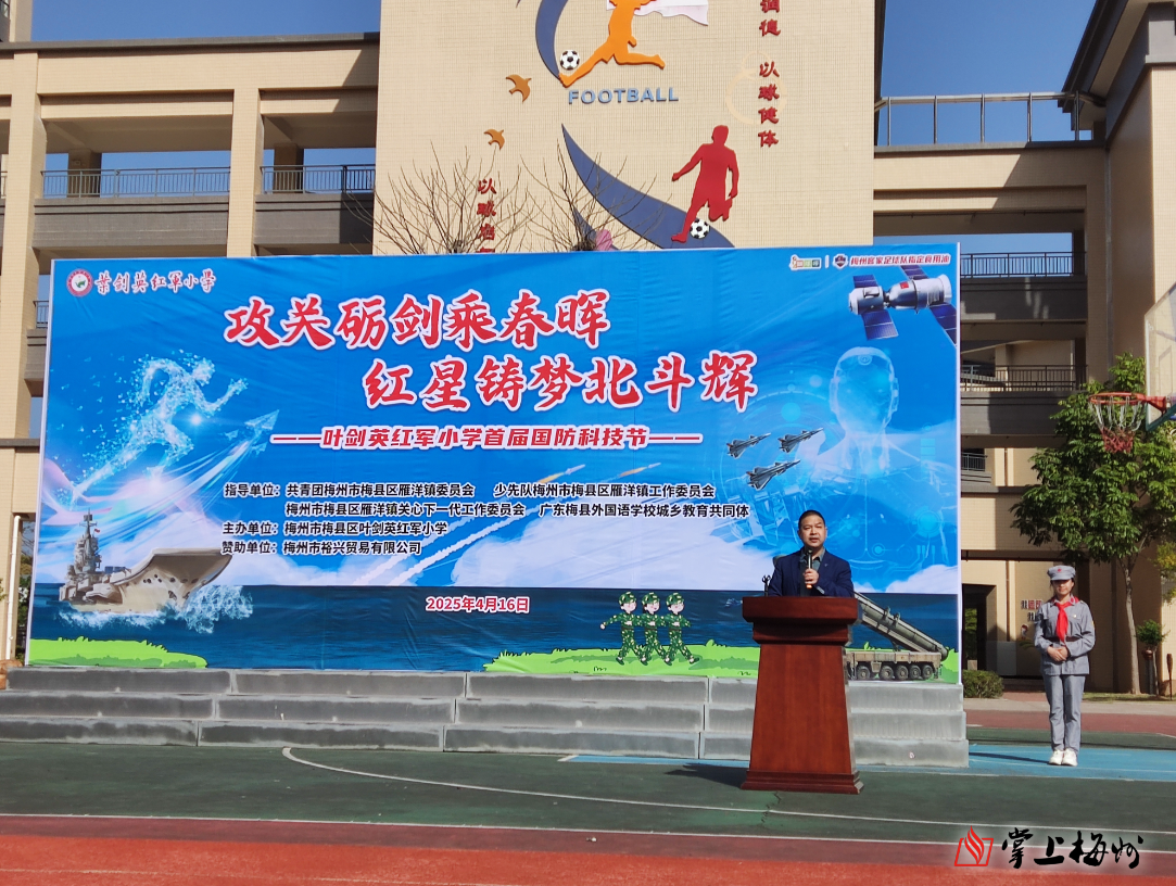 据了解,此次活动由雁洋镇团委、雁洋镇少工委、雁洋镇关工委、广东梅县外国语学校城乡教育共同体指导,梅州市裕兴贸易有限公司赞助,将红色教育、国防教育与科学教育深度融合,获师生家长一致好评,为校园科技教育树立了新标杆。梅县区叶剑英红军小学校长黄文斌表示,希望通过科技节让学生们感受到科技的魅力,未来能够好好地学科学、用科学。未来学校将在科学教育上主要抓好两方面的工作,一是要做好小学科学的课程,二是要依托学校的资源,开展好学生的科创教育。