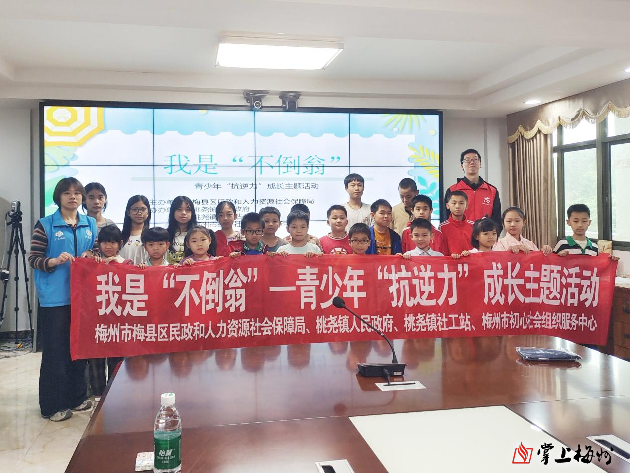 掌上梅州讯 日前,梅县区民政和人力资源社会保障局、梅县区桃尧镇政府、梅县区桃尧镇社工站、梅州市初心社会组织服务中心等单位联合在桃尧镇开展“不倒翁”——青少年“抗逆力”成长主题活动。
