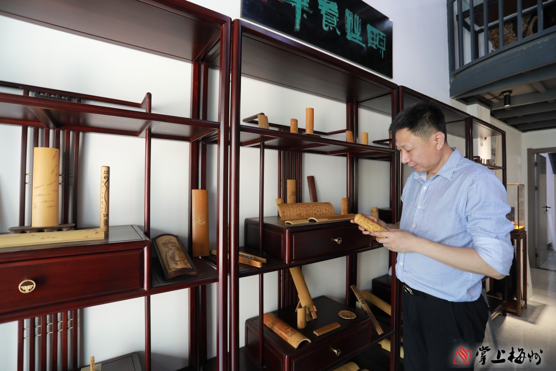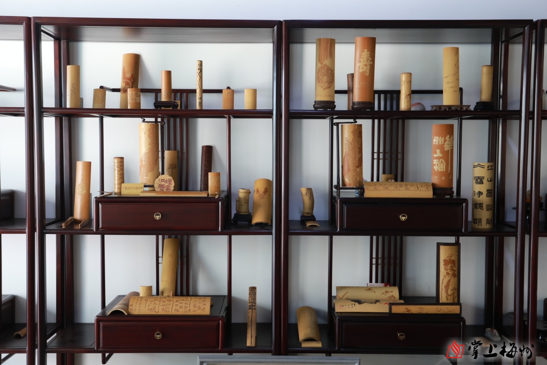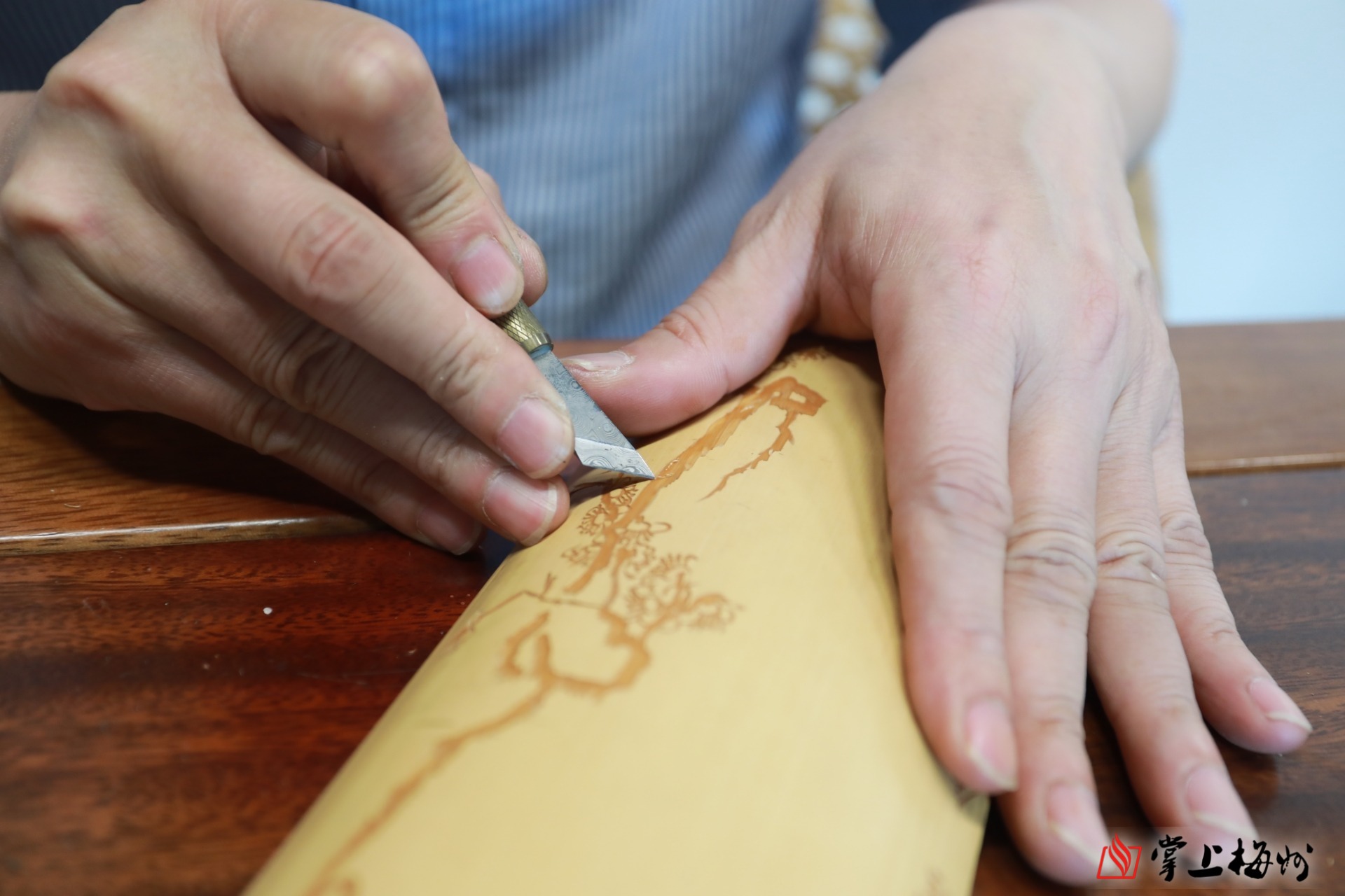 以刀为笔,在光滑平整的竹片上或刻上栩栩如生的各种图案,或刻上“姿态”各异的字体,再根据竹子的形态制成各类工艺品或生活用品,赋予竹子“二次生命”,使其同时具有书卷之气和金石味道。这便是梅县区非物质文化遗产代表性项目——岭南竹刻的魅力。