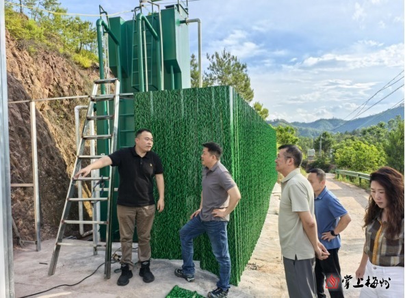5月21日,荔湾区华林街道办事处主任陈定海一行现场调研旋风村一体化净水设备升级改造。