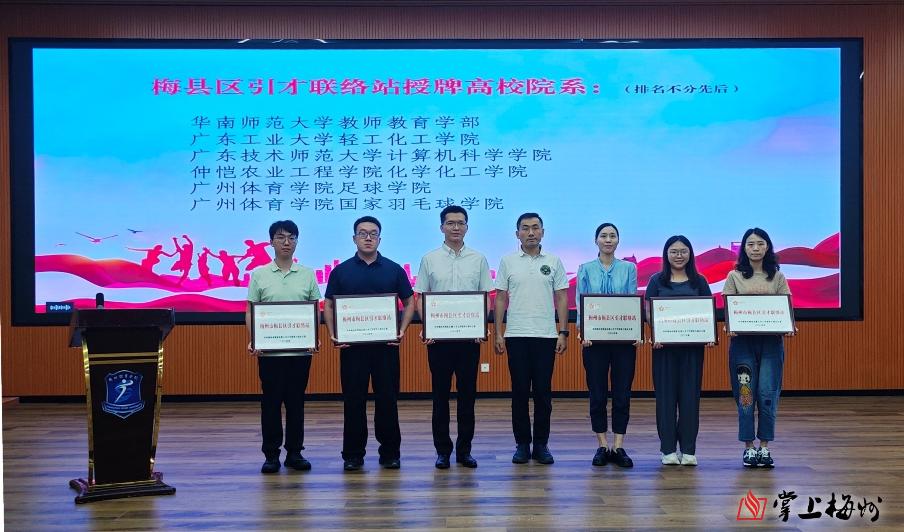 掌上梅州讯 6月3日,梅县区委副书记贾领辉率梅县区团委负责同志赴广州体育学院开展引才活动并举行“梅州市梅县区引才联络站”授予仪式。来自华南师范大学、广东工业大学、广东技术师范大学、仲恺农业工程学院、广州体育学院5所院校近百名师生参加。
