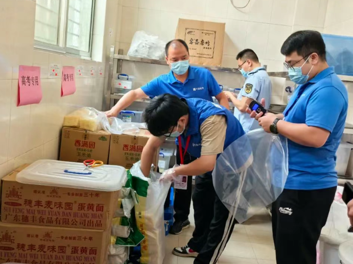 当天上午,梅县区市场监管局执法人员及相关工作人员,前往辖区华侨中学、梅雁中学等2025年高考食宿学校及其他中小学幼儿园食堂开展校园食品安全抽检。第三方专业检测机构针对蔬菜、畜禽肉、大米、粉面、调味品等食品开展监督抽检。同时,执法人员对食堂环境卫生、食品留样、餐具消毒、从业人员健康管理、进货查验制度等情况进行了细致检查,切实筑牢校园食品安全防线。