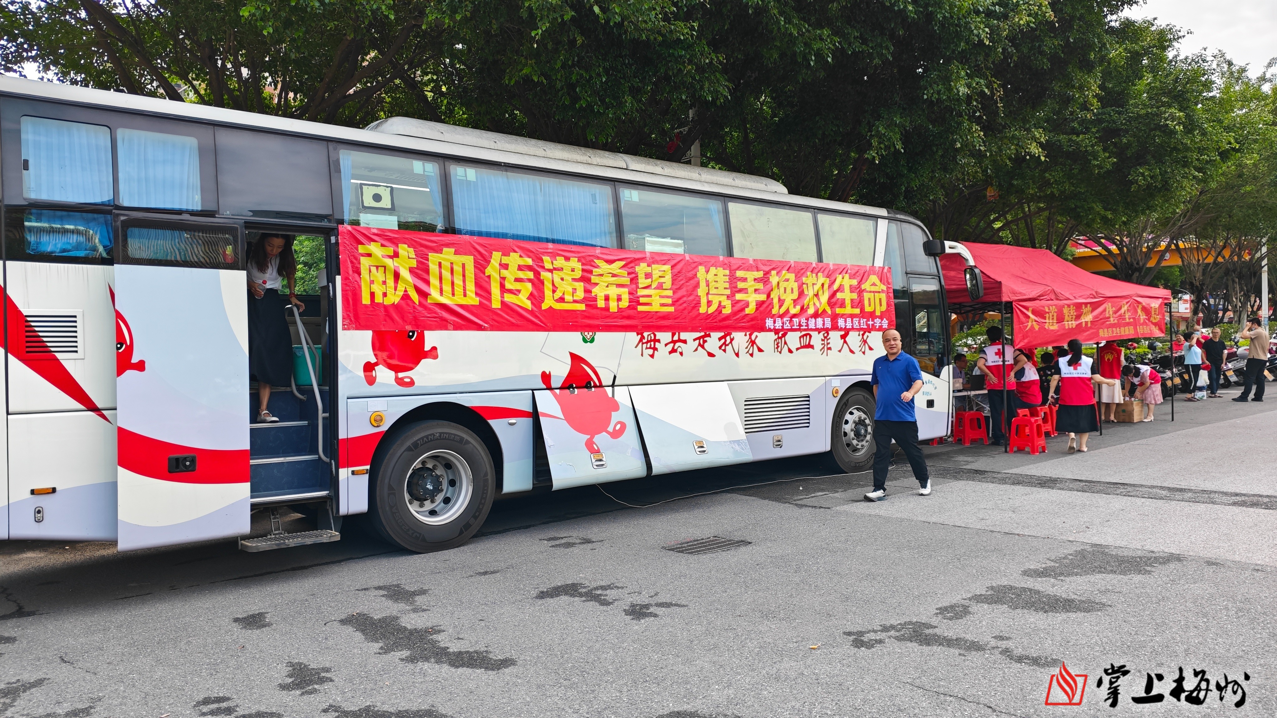 掌上梅州讯 6月13日上午,梅县区卫健局、梅县区献血办、梅县区红十字会等部门联合在梅县区文体中心开展无偿献血主题宣传活动,动员社会各界传播生生不息的人道精神,引导全社会共同关注并积极参与无偿献血公益事业。