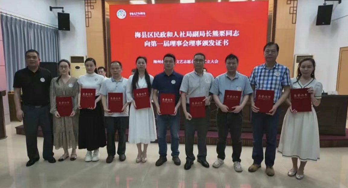 会议表决通过了《梅州市梅县区文艺志愿者协会章程》,选举产生了梅州市梅县区文艺志愿者协会第一届理事会成员、监事,举行了授牌仪式,并为新一届协会领导机构成员颁发荣任证书。