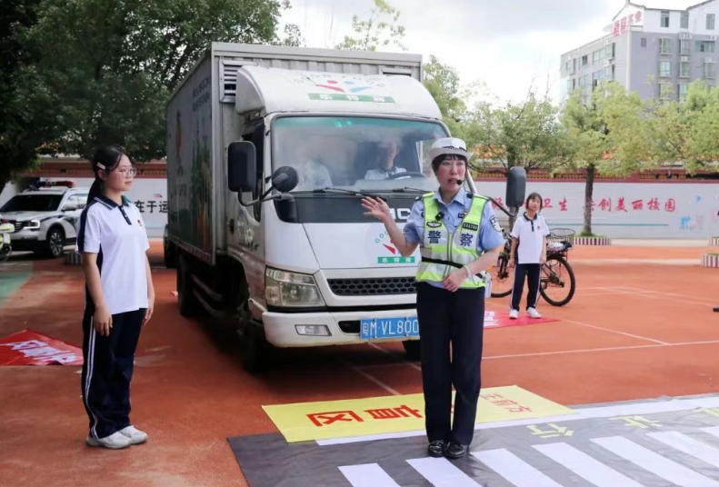同时,交警还设置了大型车辆盲区体验环节,同学们在交警的指导下坐在驾驶座上体验驾驶盲区,了解大型车辆盲区的认识及车辆盲区的危害,并教授学生如何规避盲区。