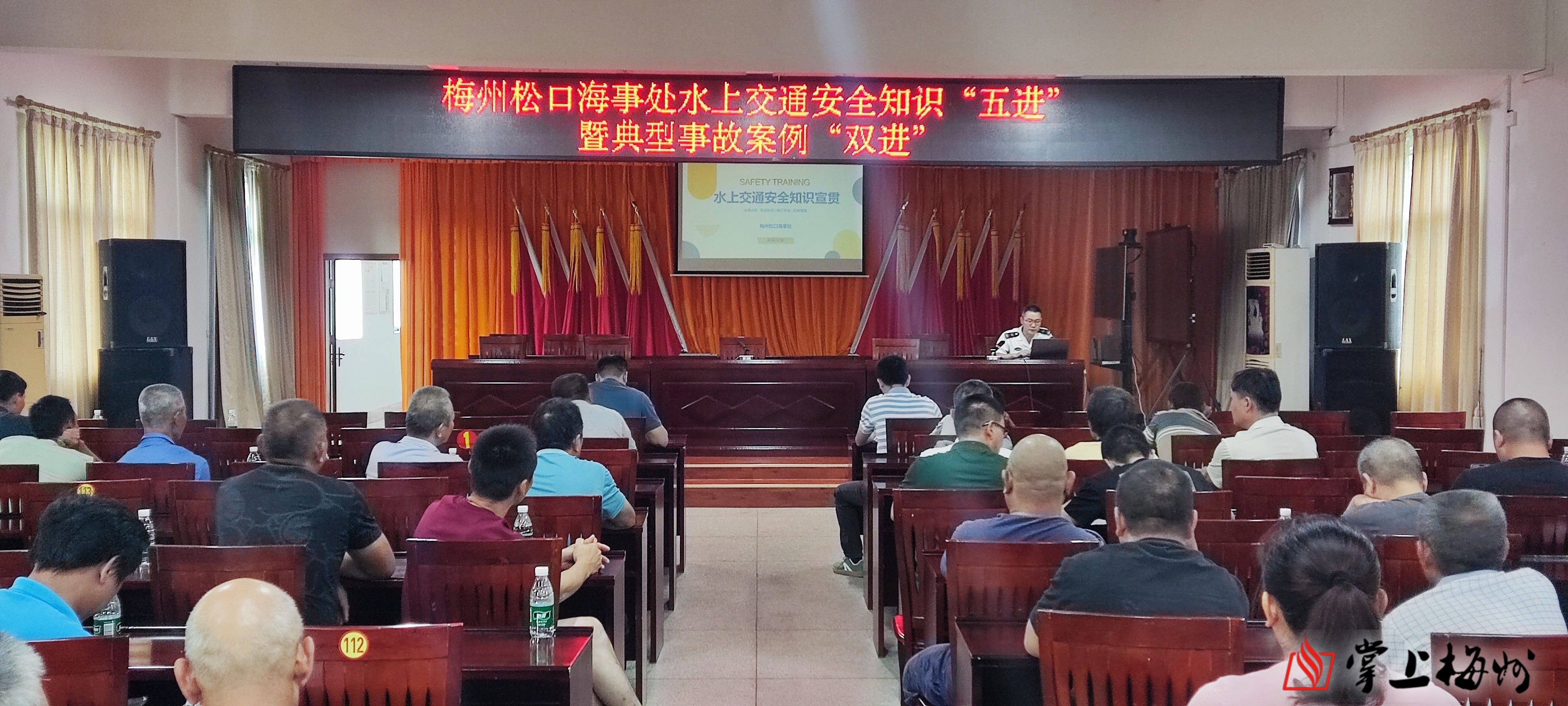 掌上梅州讯 6月26日,梅州松口海事处联合梅县区农业农村局、松口镇人民政府、松口镇中心卫生院召开松口镇船舶安全工作会议,开展水上安全知识进乡镇活动,运输船、渔船、自用船船主和各镇村负责人等80余人参加。