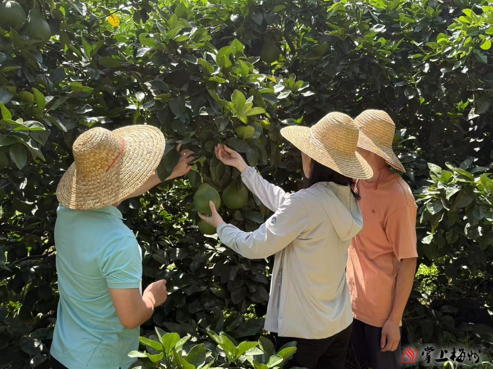 掌上梅州讯 日前,由嘉应学院省级农村科技特派员与广东省柑橘橙柚特色农业气象服务中心(梅州市生态与农业气象中心)组成的技术团队深入梅县区白渡镇、石扇镇开展“把脉”柚果品质的科技行动。他们此行的目标,就是运用气象科技这把“金钥匙”,精准破解影响“梅州柚”国家地理标志产品品质提升的难题,特别是蜜柚种植户头疼的“汁胞粒化”问题,为家乡柚产业注入更强劲的科技动力。